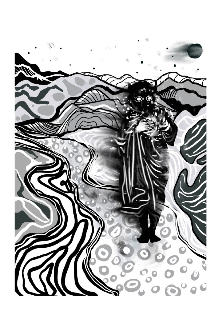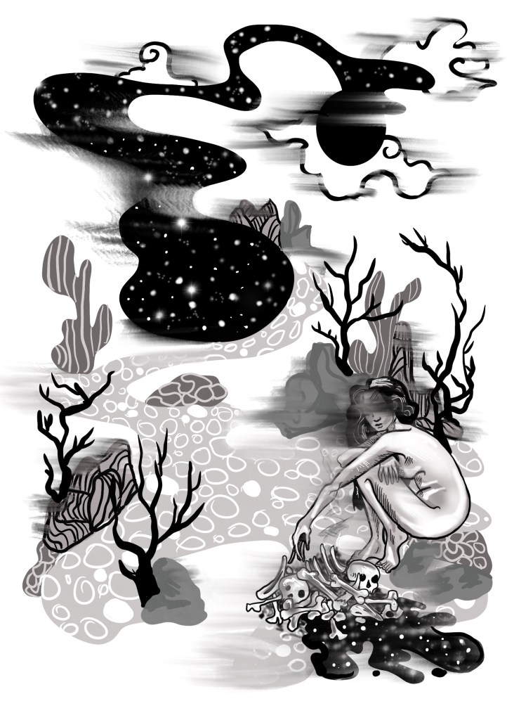 It is titled “Would You Like to Come Home?“, a collection of poetry I wrote in a meditational/trance-like/cut-up technique series of exercises in Marielyst last summer, inspired by various Books of the Dead (and my love for the cut-up technique and Burroughs of course). Ok, I’ll say it. It’s my very own Book of the Dead. It of course comes with its own illustrations: