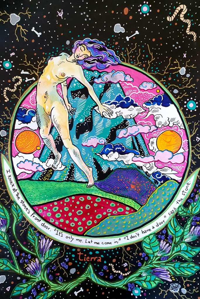 -Having said this, I conclude this message with a preview of my latest art series, a collection of Elements made as illustrations with acrylic, embroidery and ink on paper.