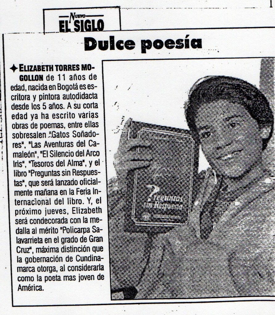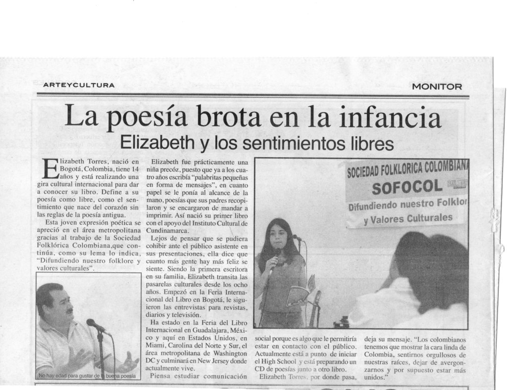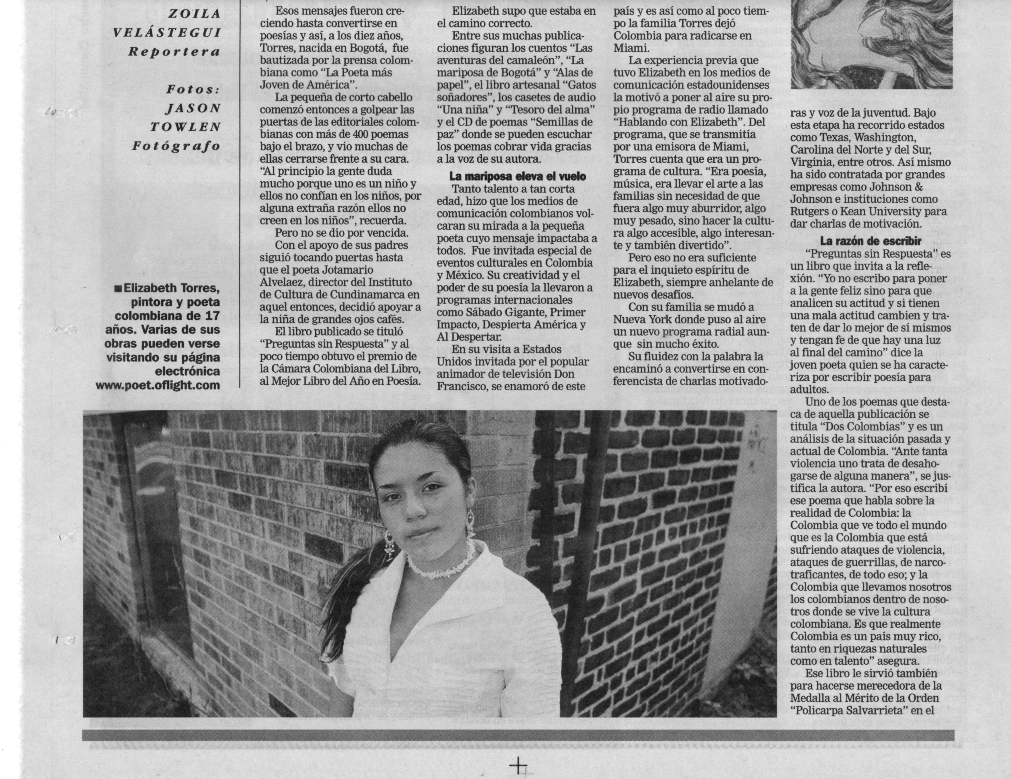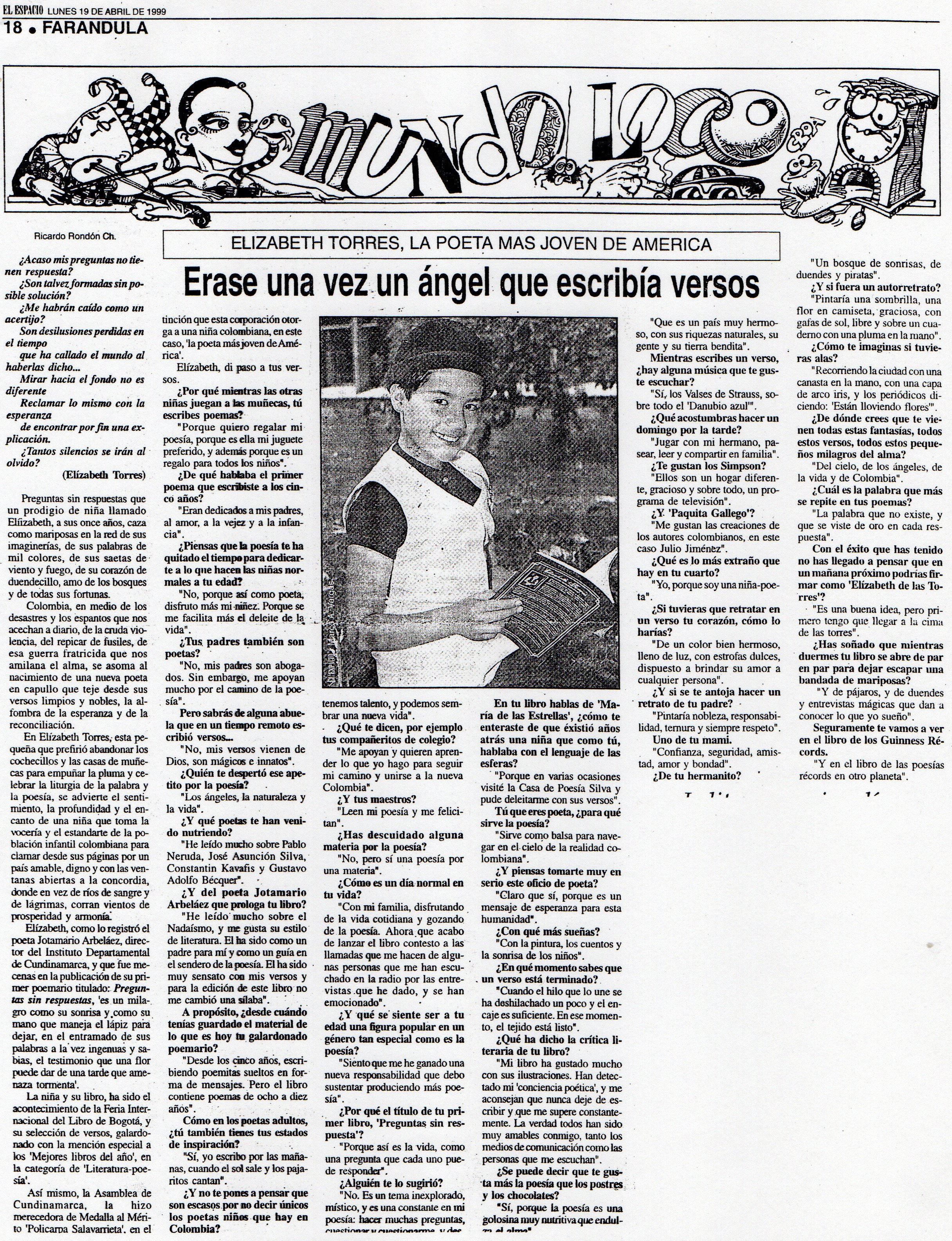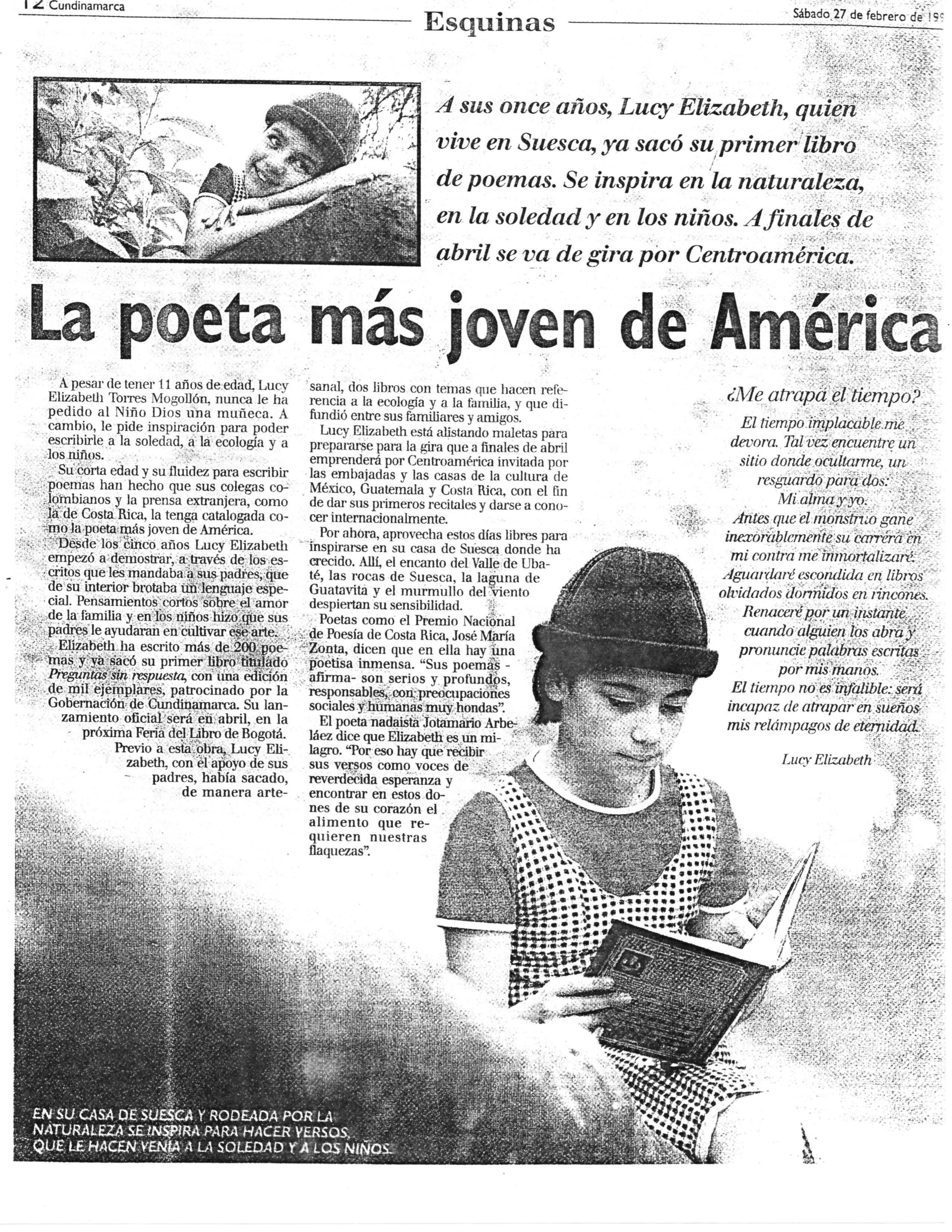 The Youngest Poet of America – El Tiempo (Spanish) Colombia, 1999