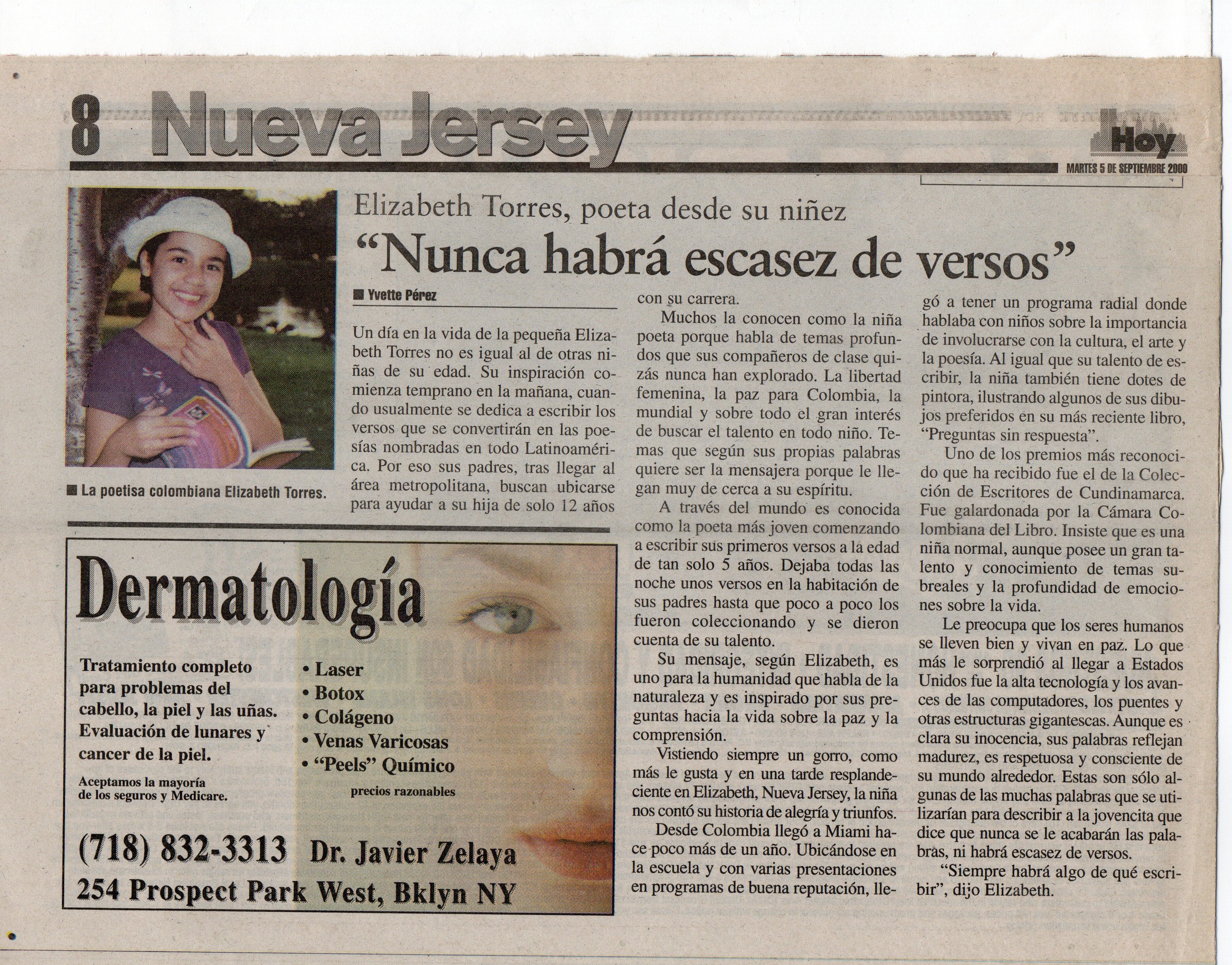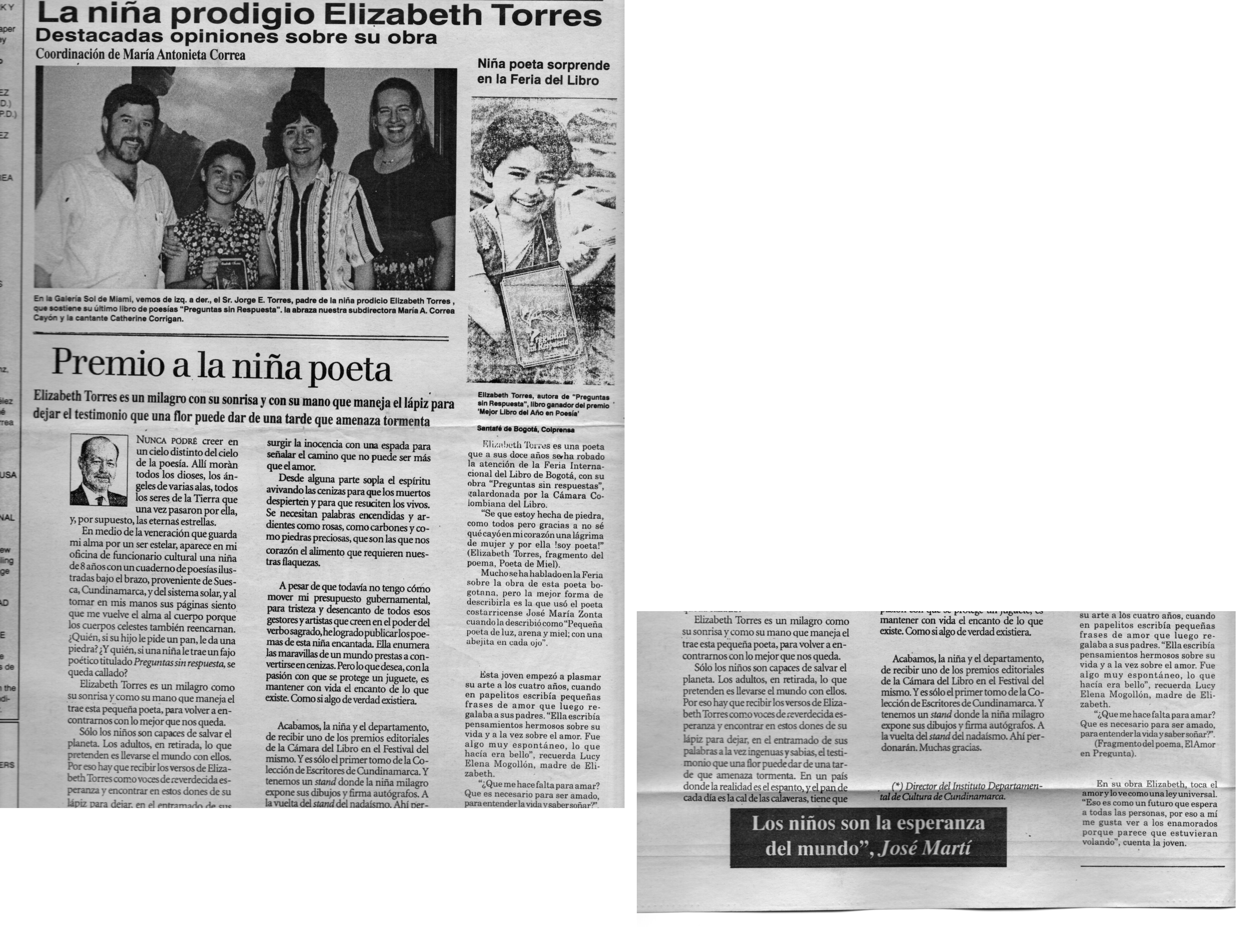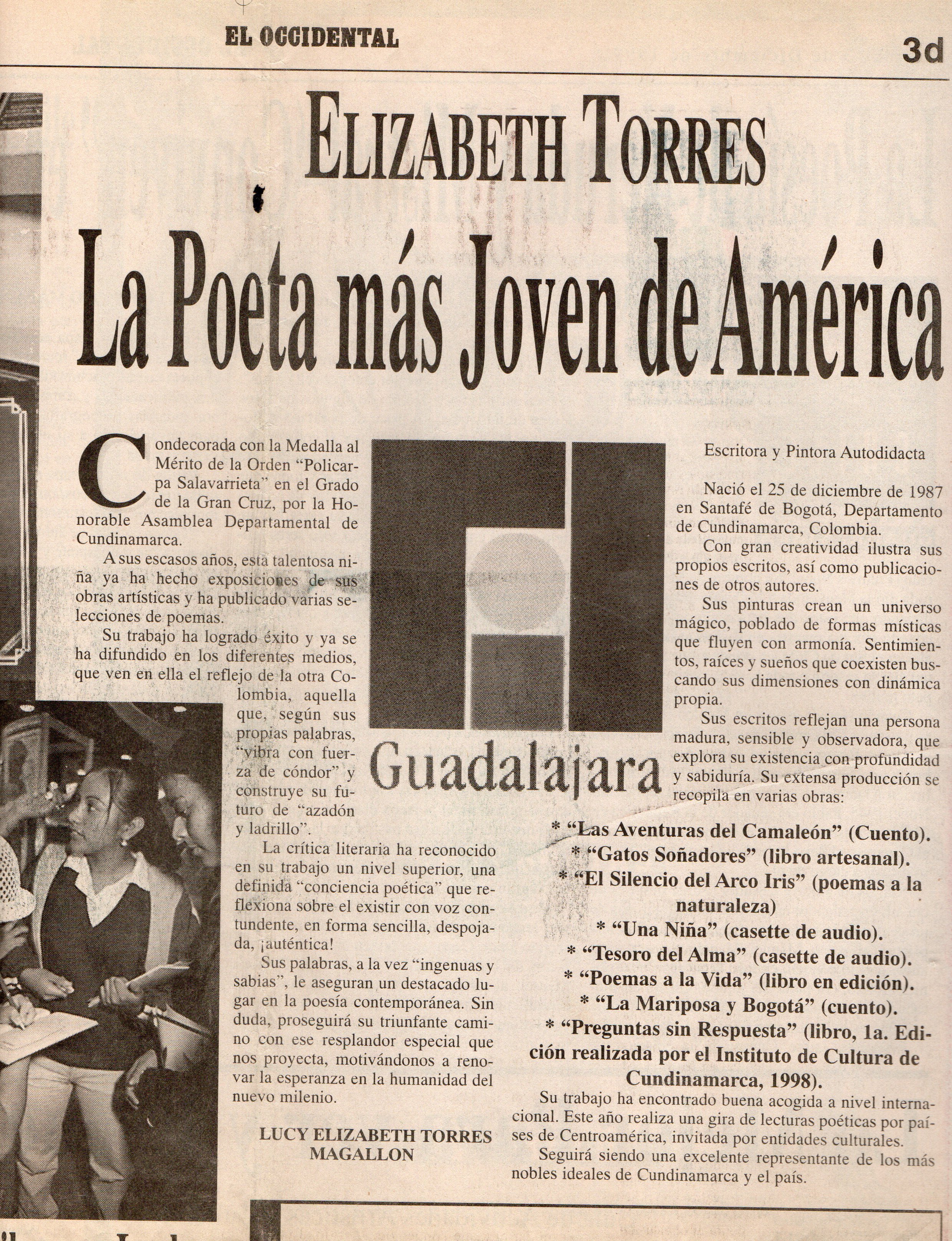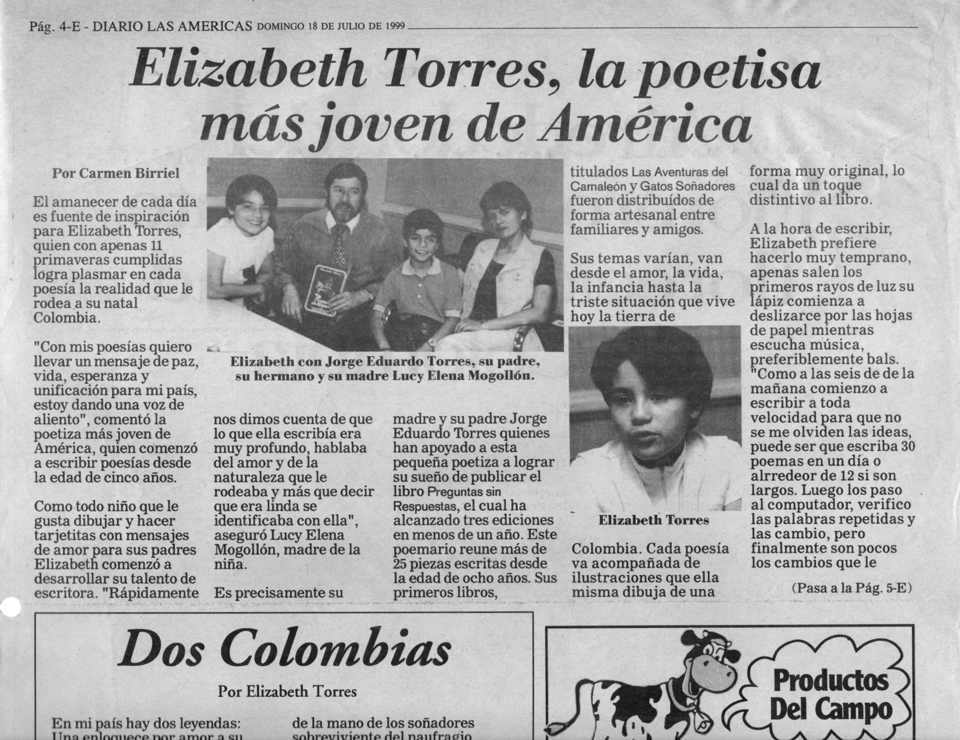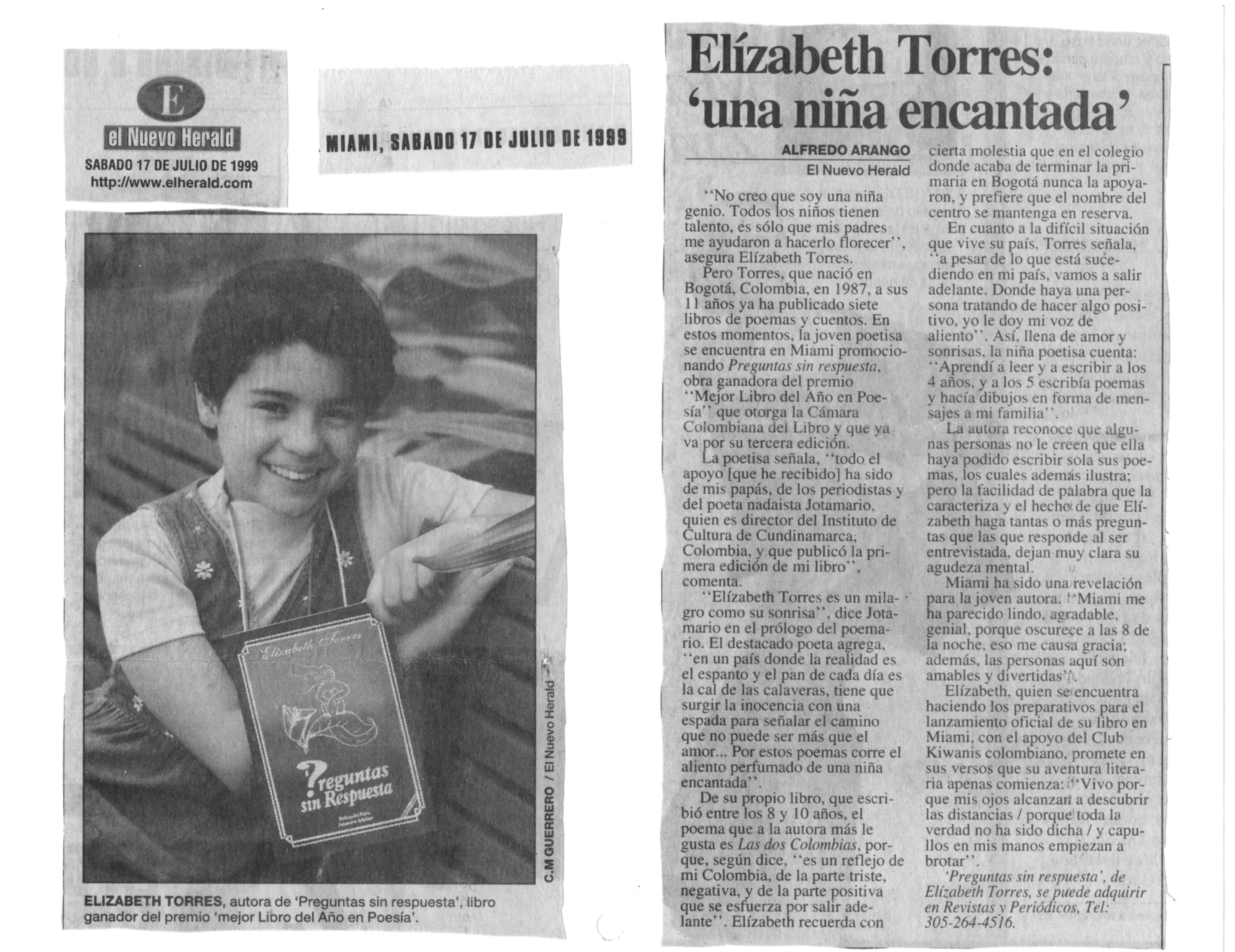 The Youngest Poet of America – El Tiempo (Spanish) Colombia, 1999