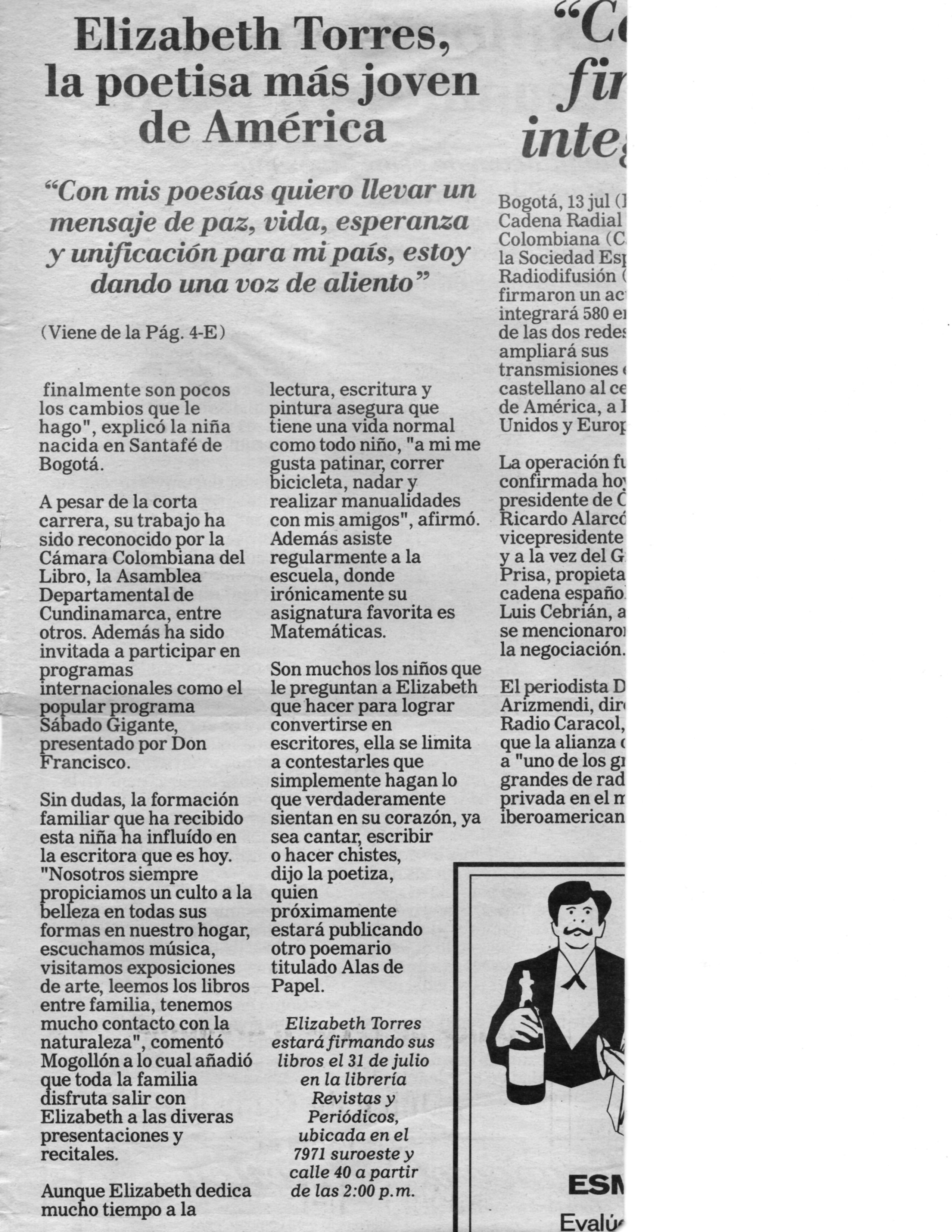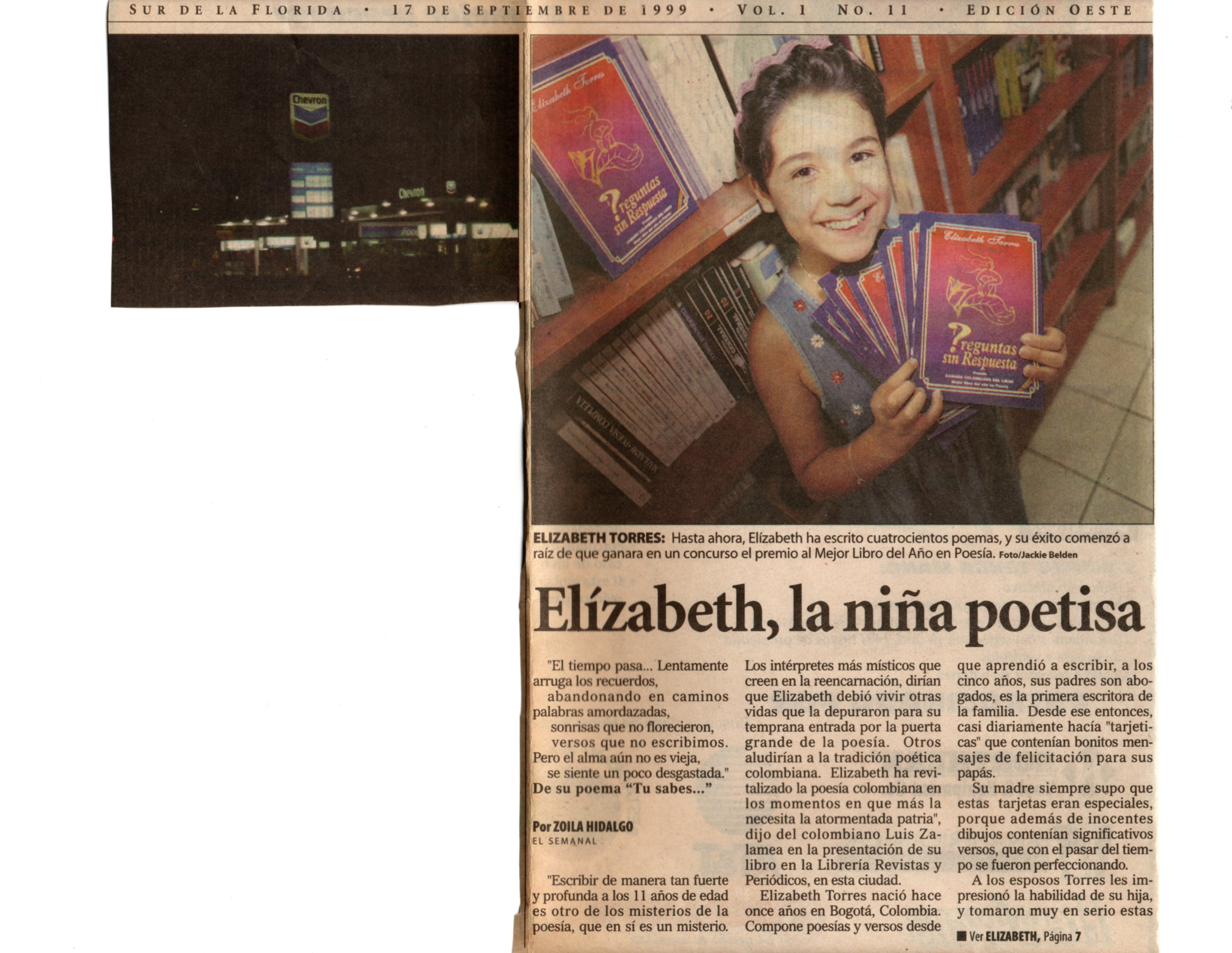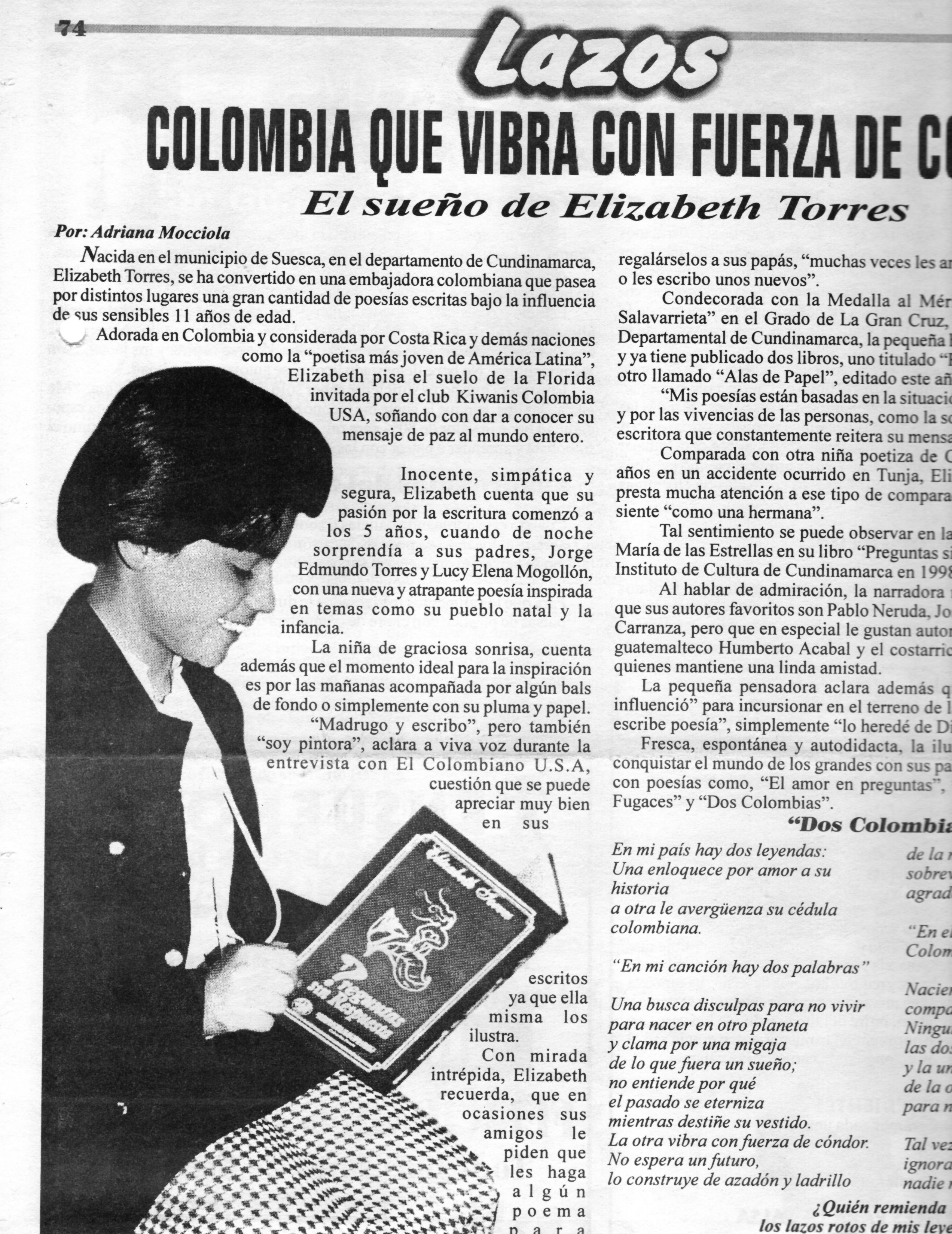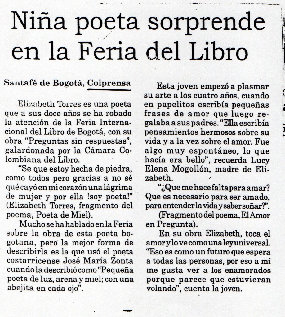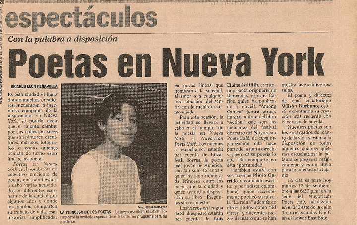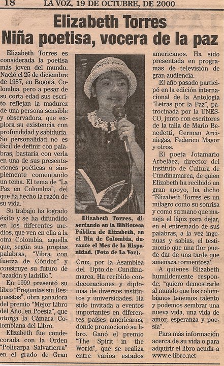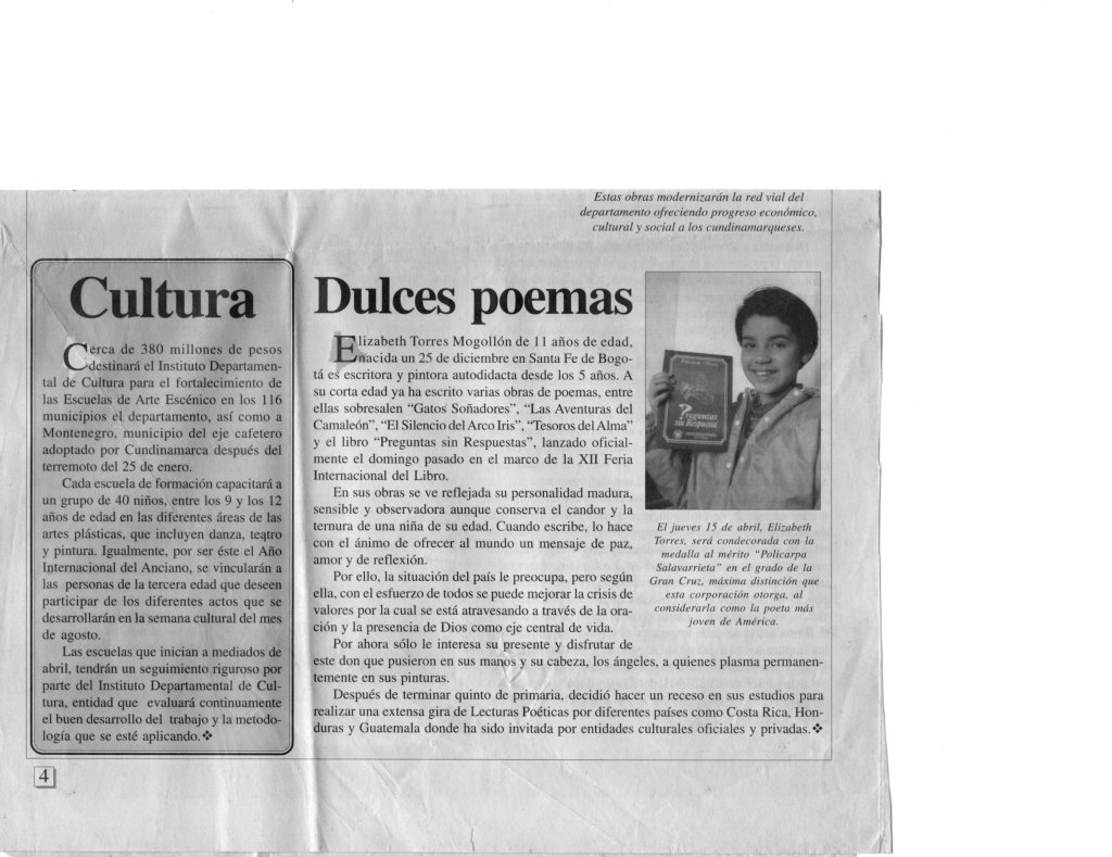 The Youngest Poet of America – El Tiempo (Spanish) Colombia, 1999