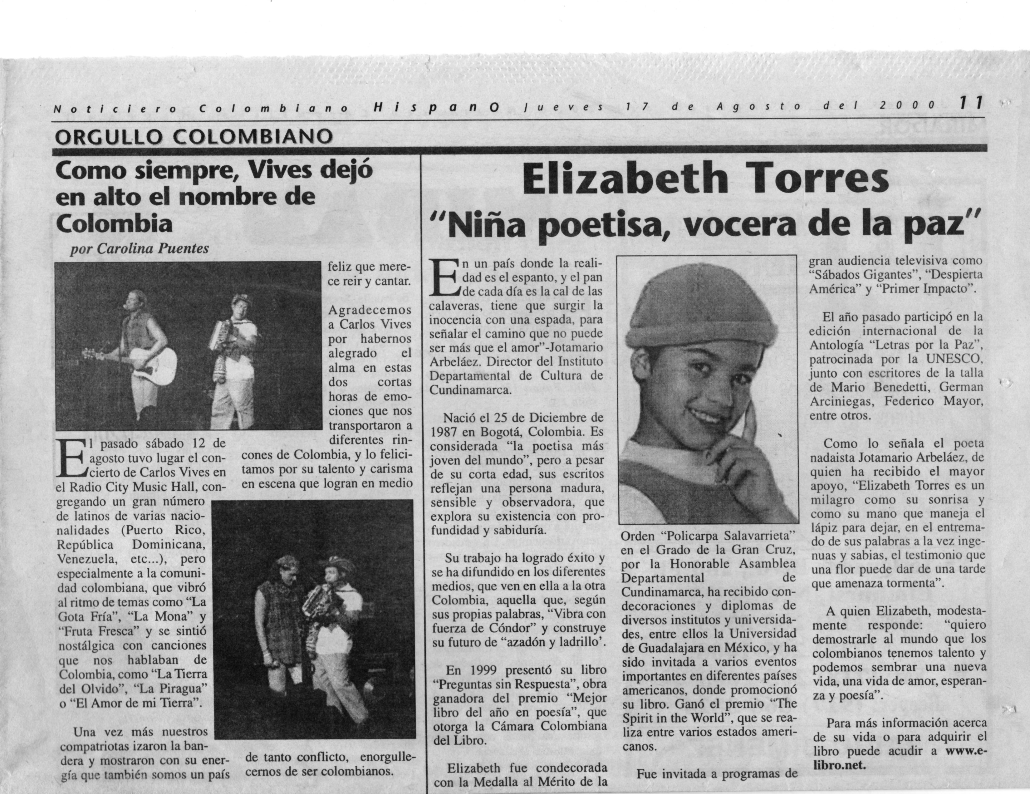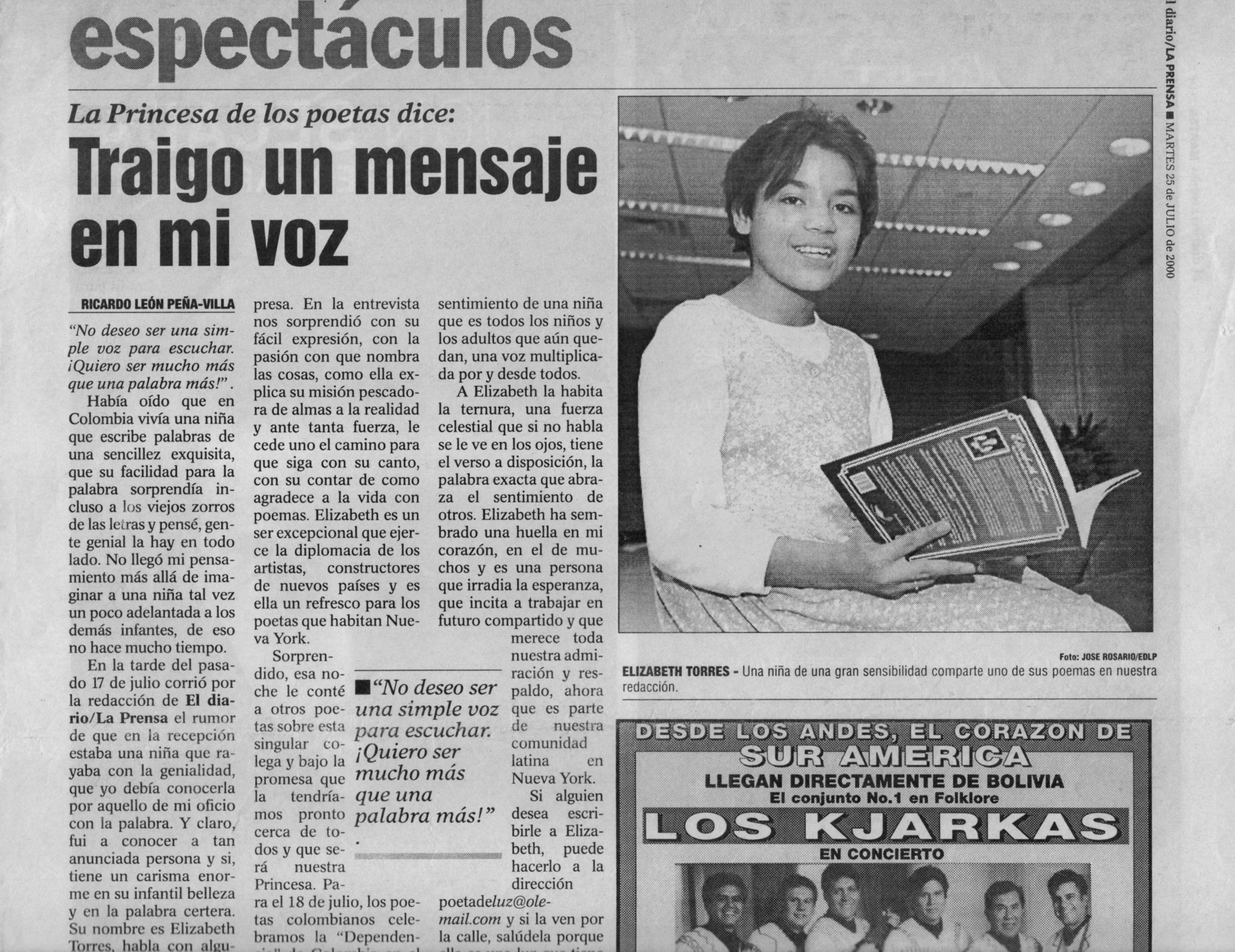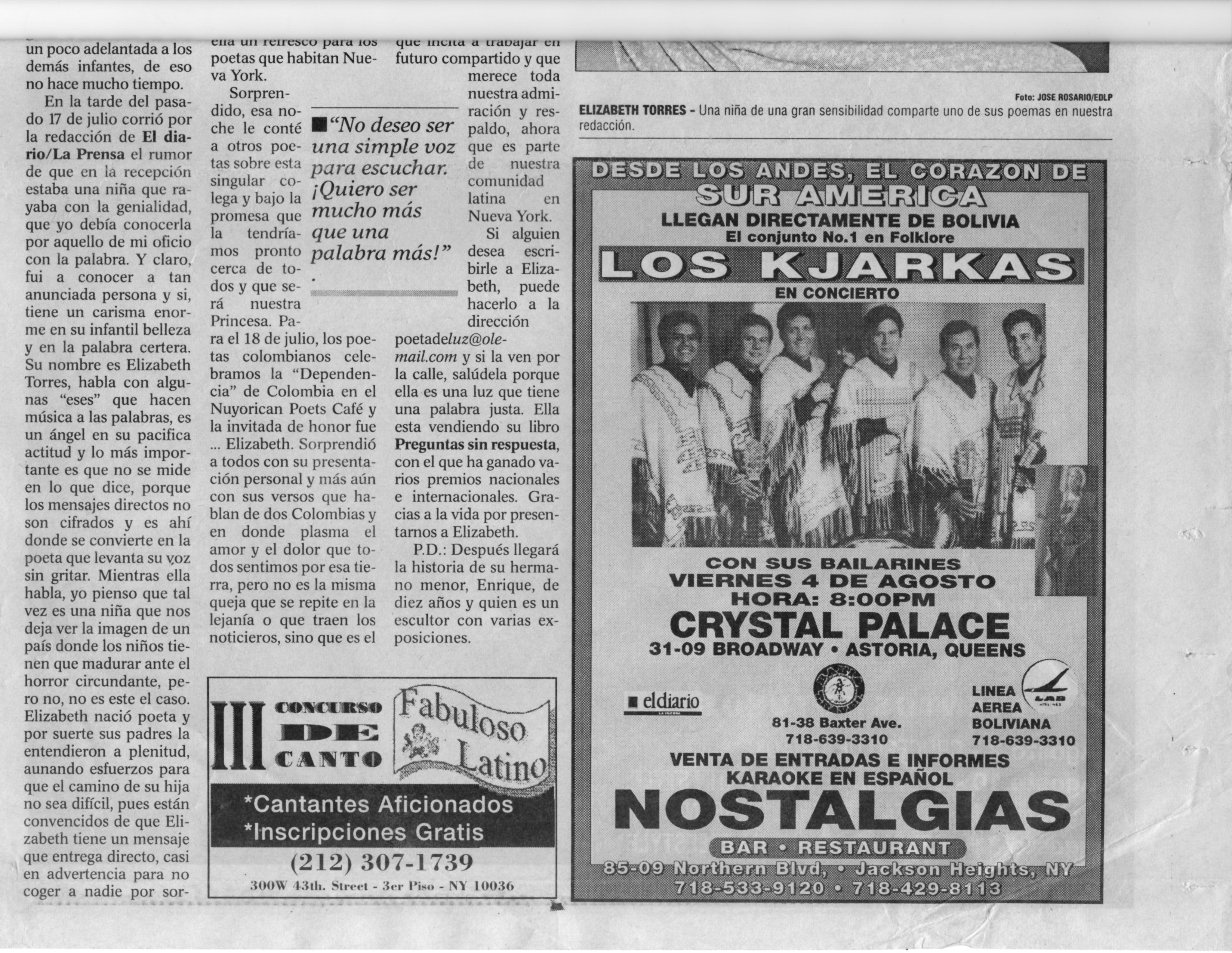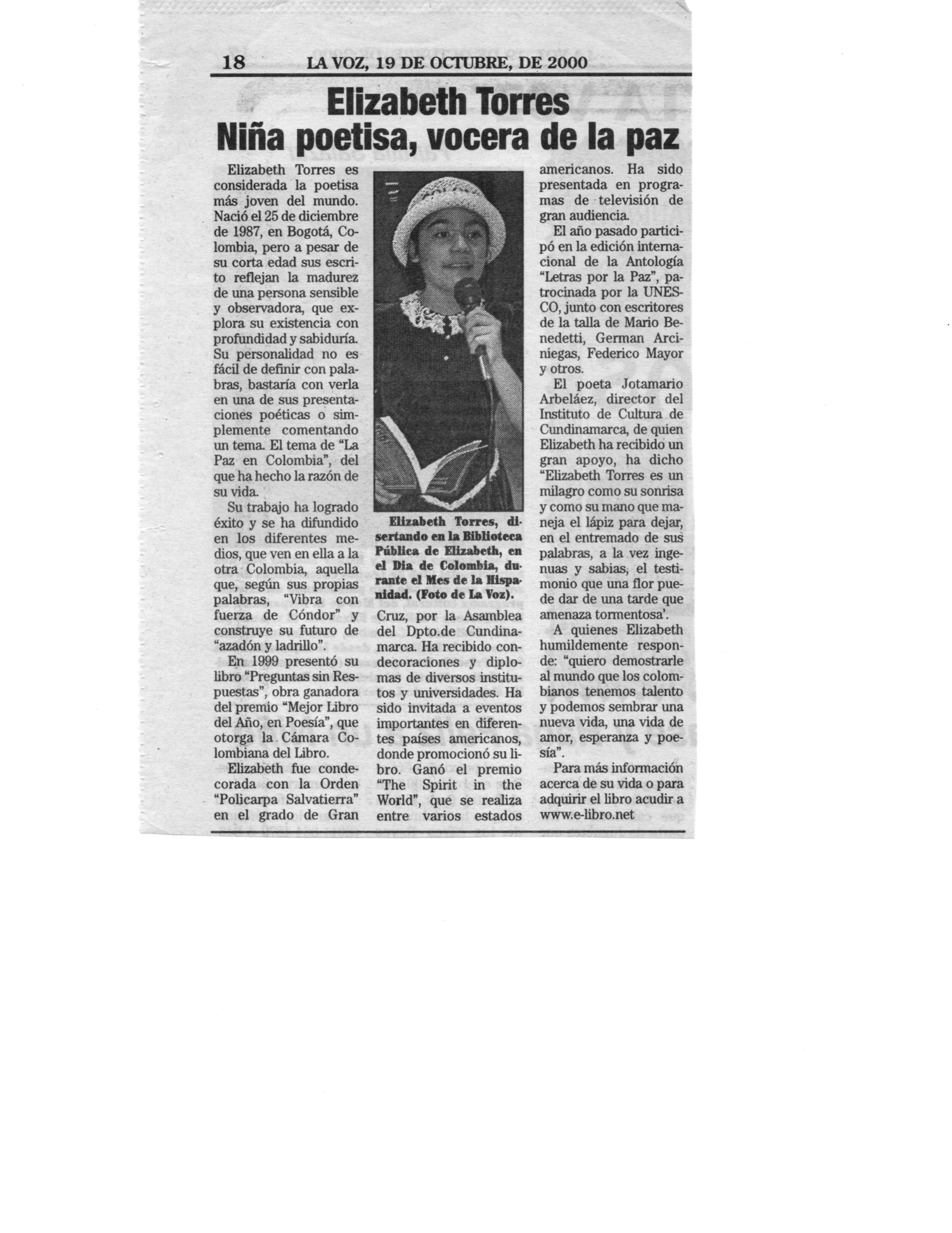 The Youngest Poet of America – El Tiempo (Spanish) Colombia, 1999