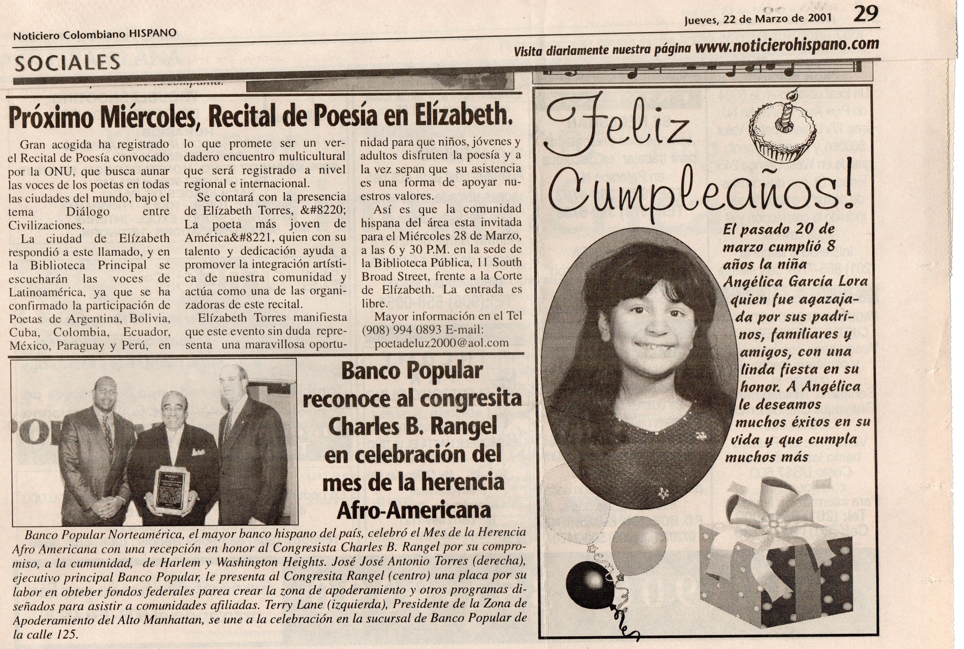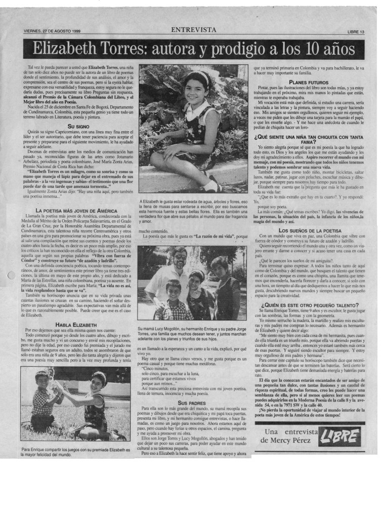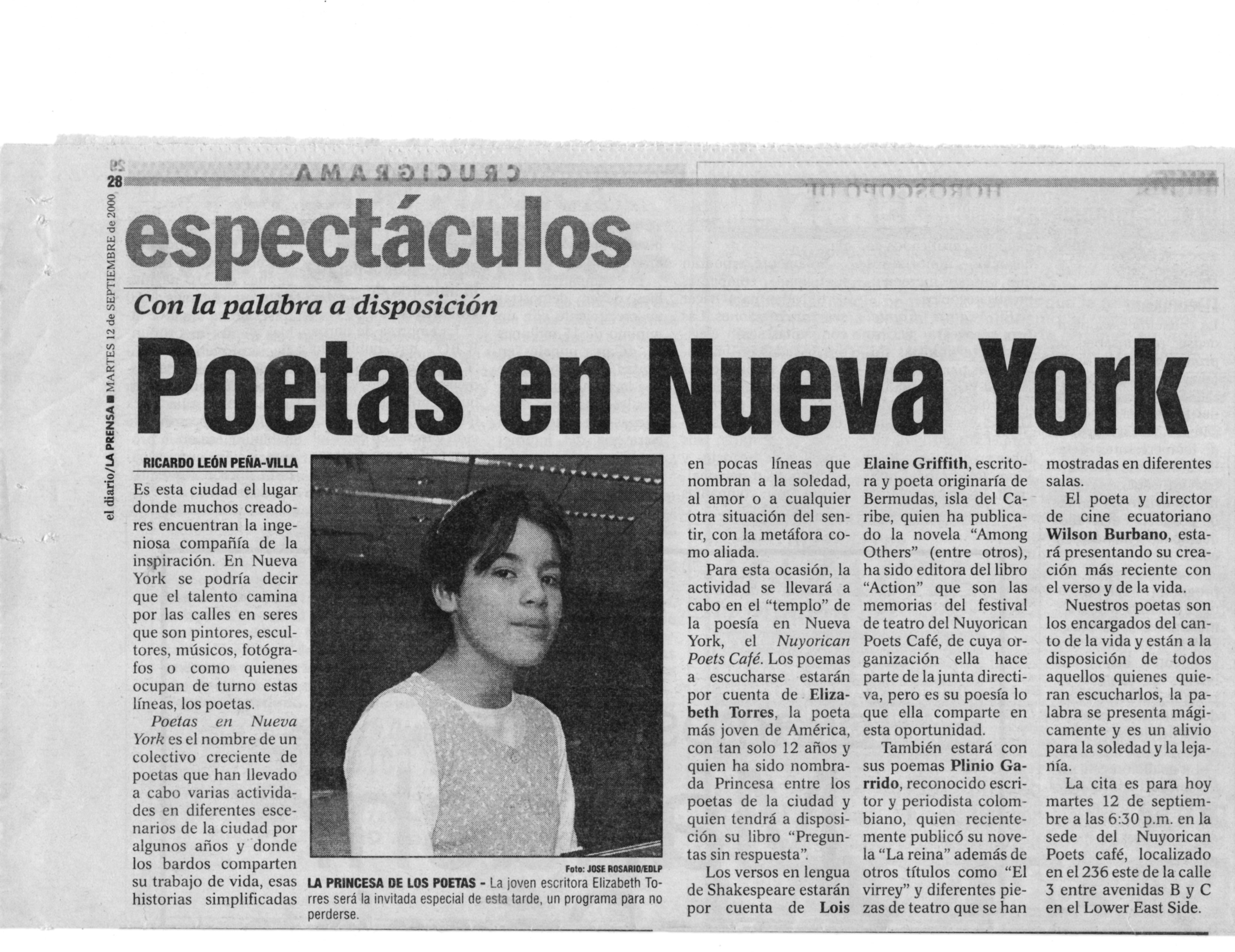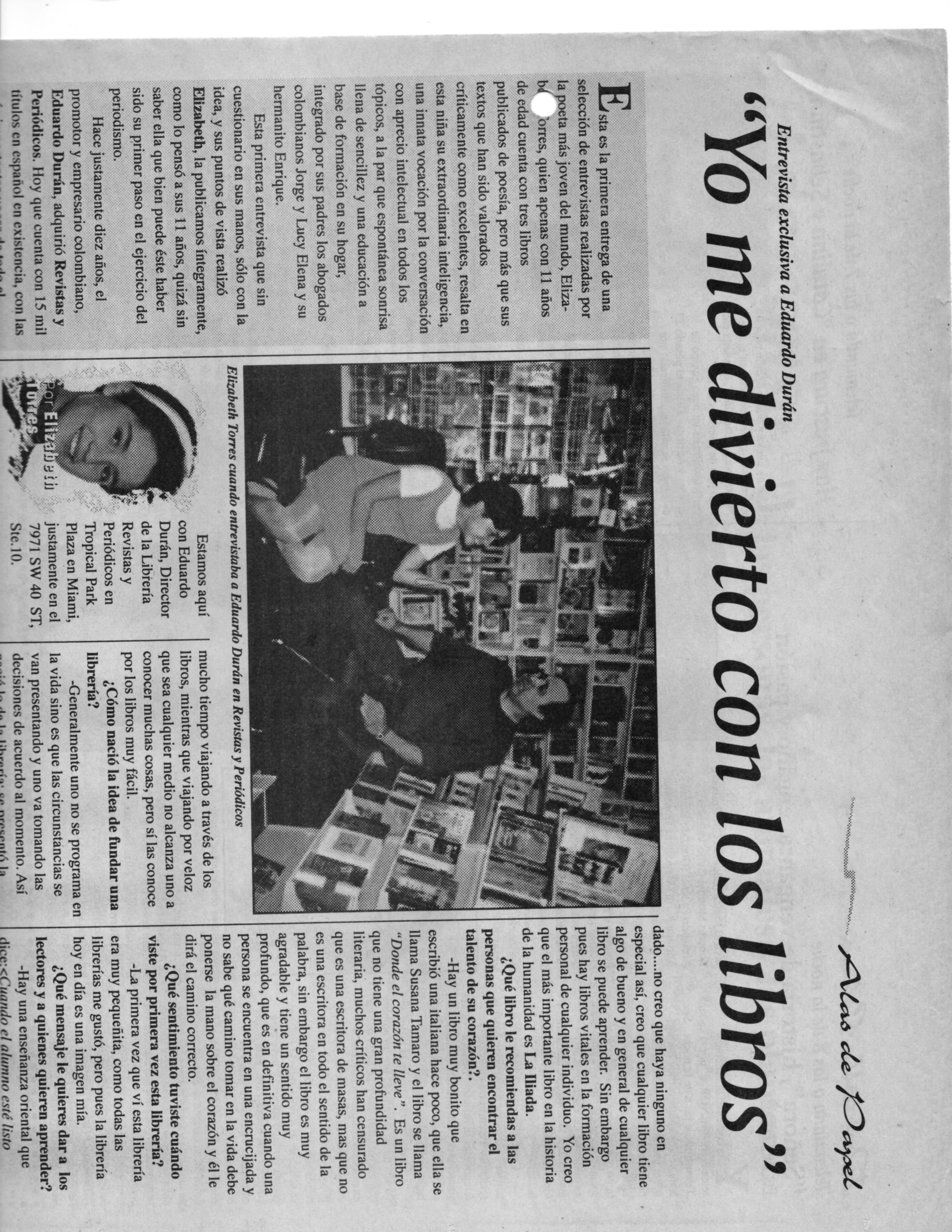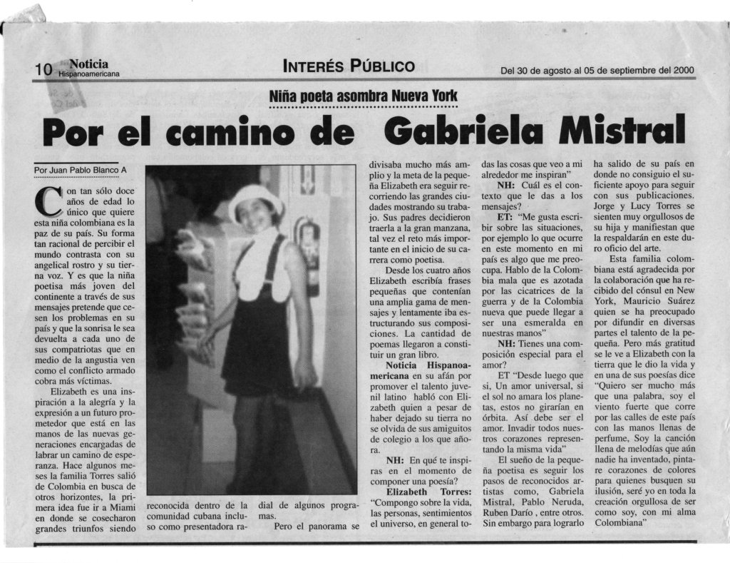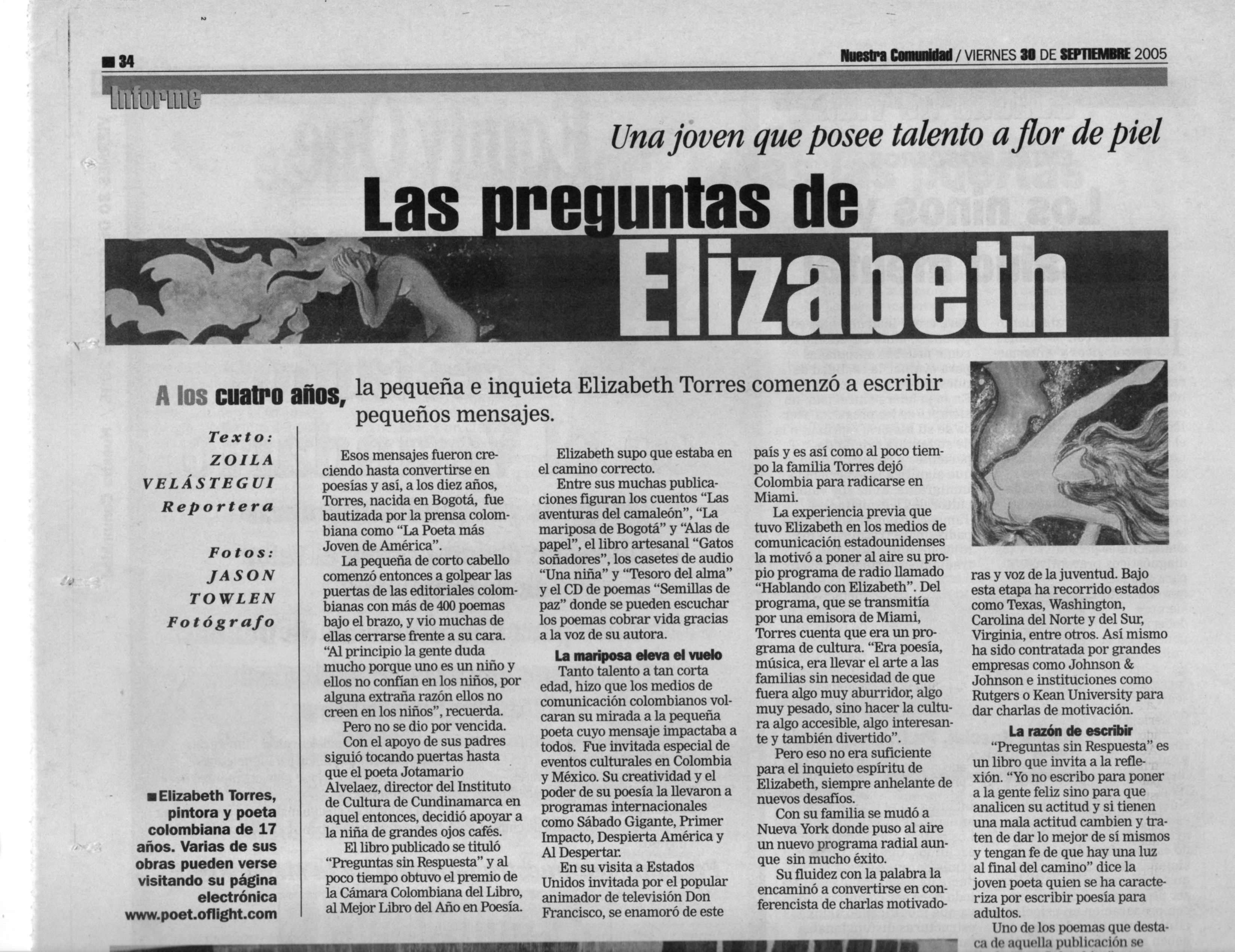 The Youngest Poet of America – El Tiempo (Spanish) Colombia, 1999