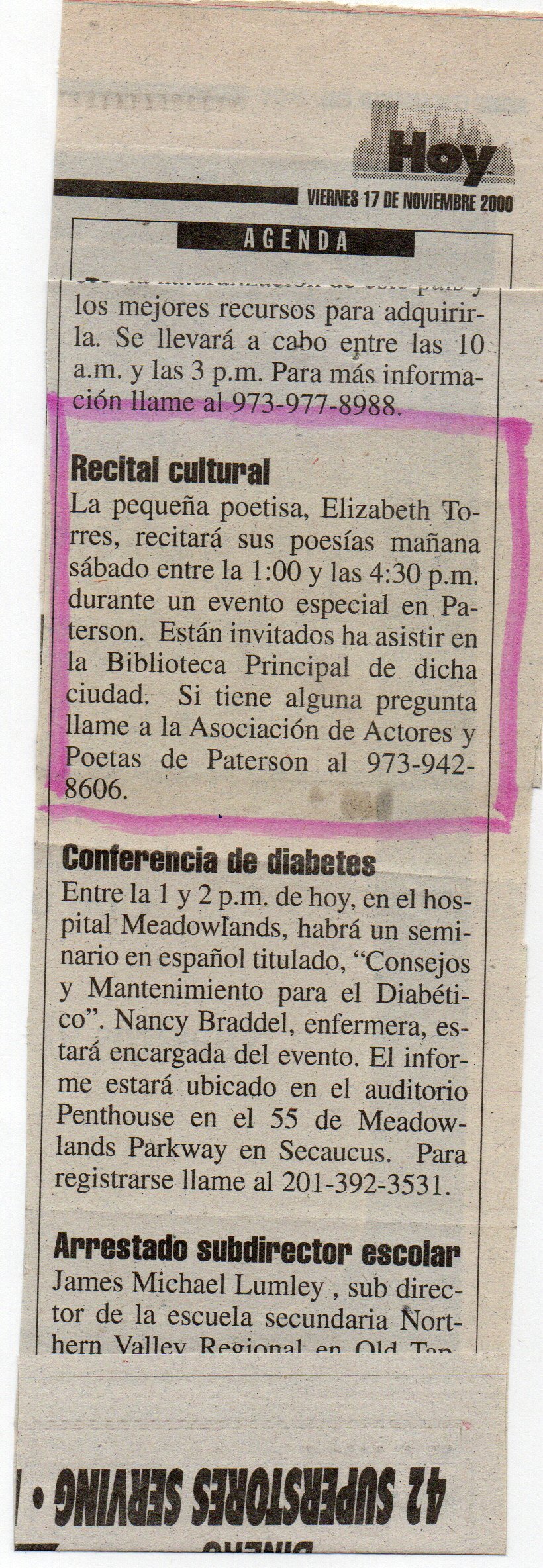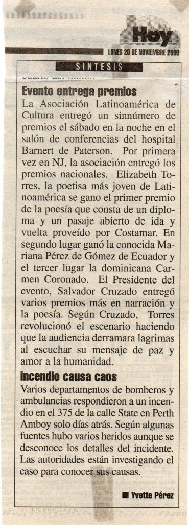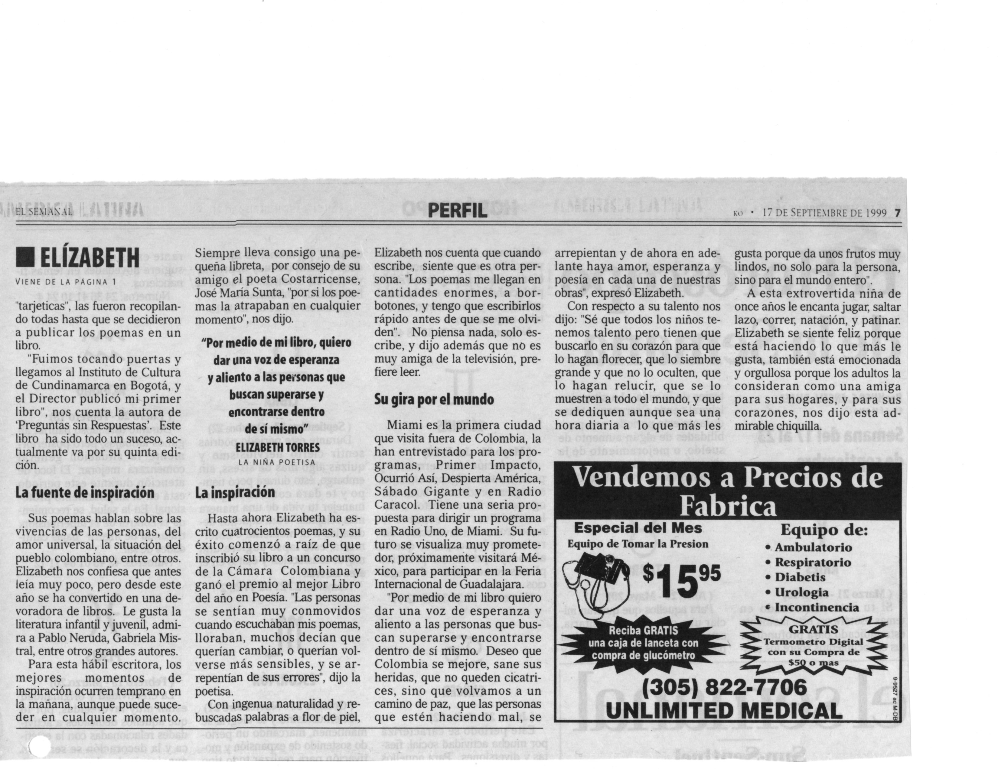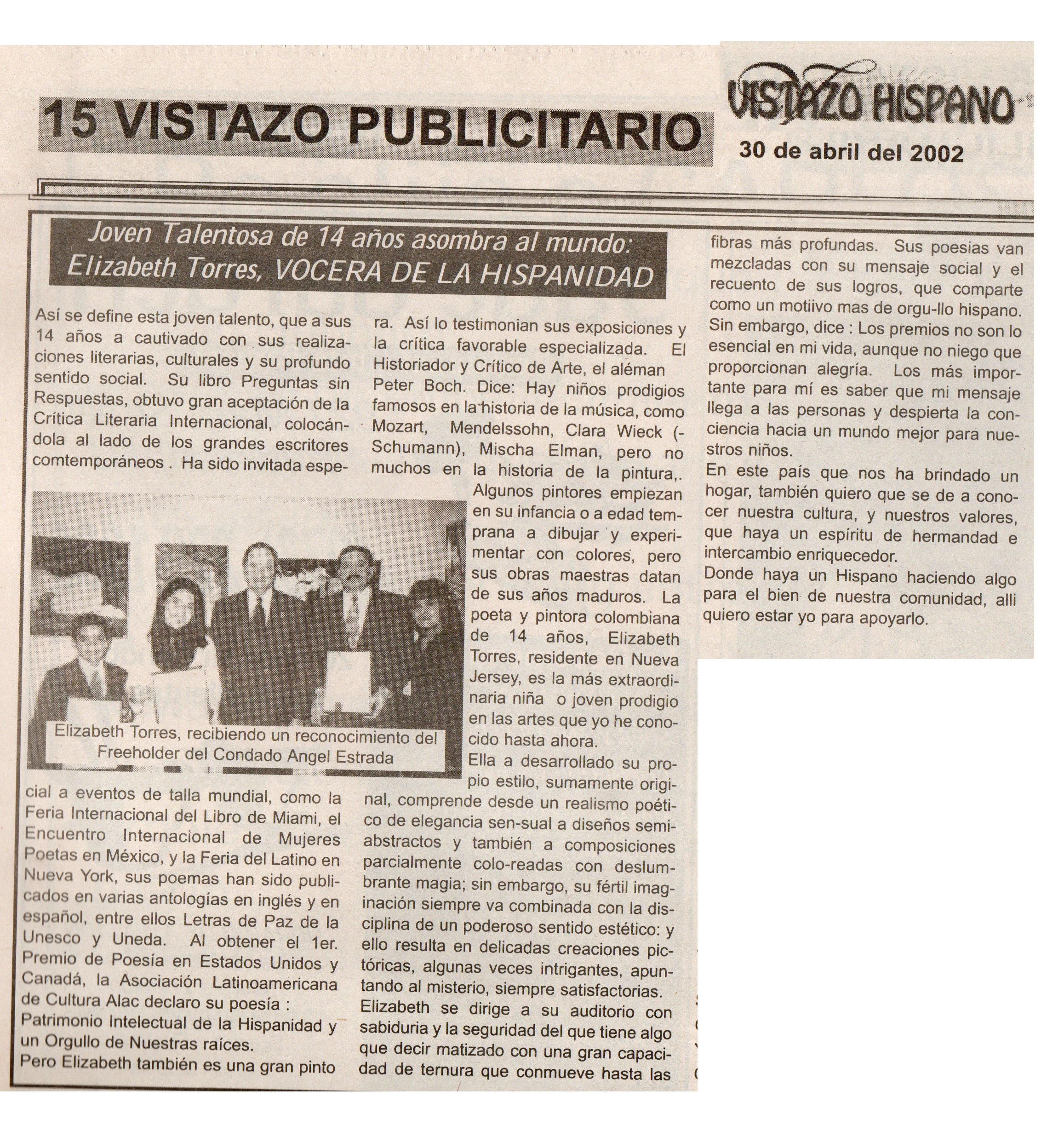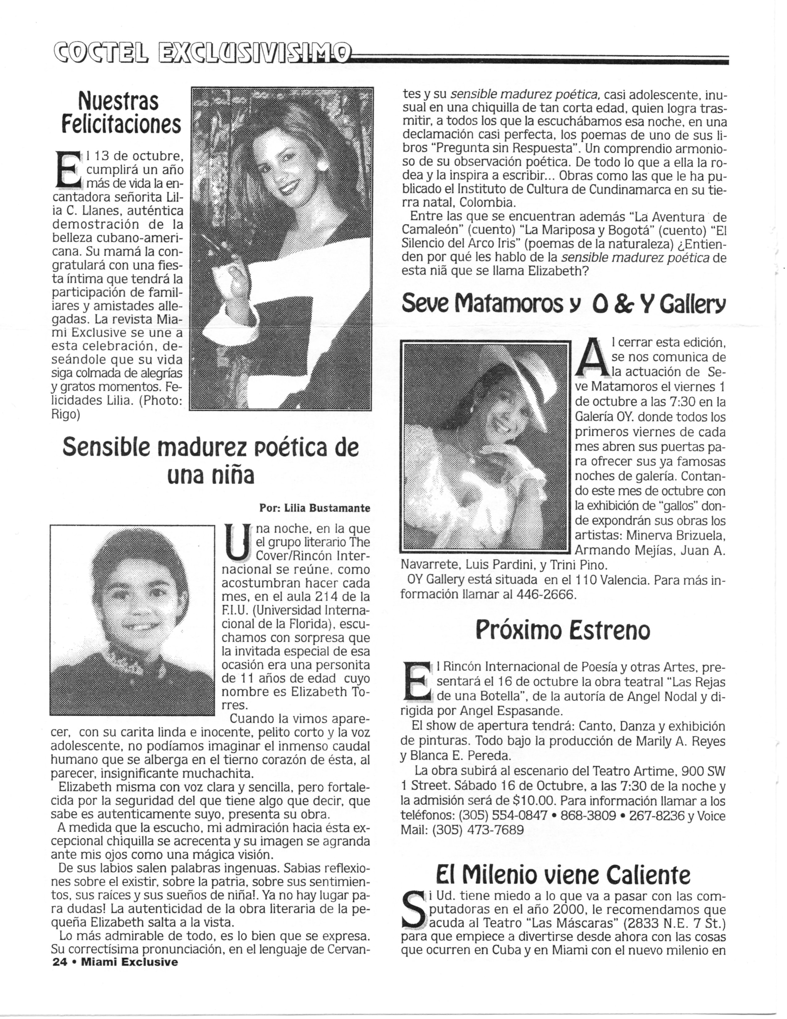 The Youngest Poet of America – El Tiempo (Spanish) Colombia, 1999