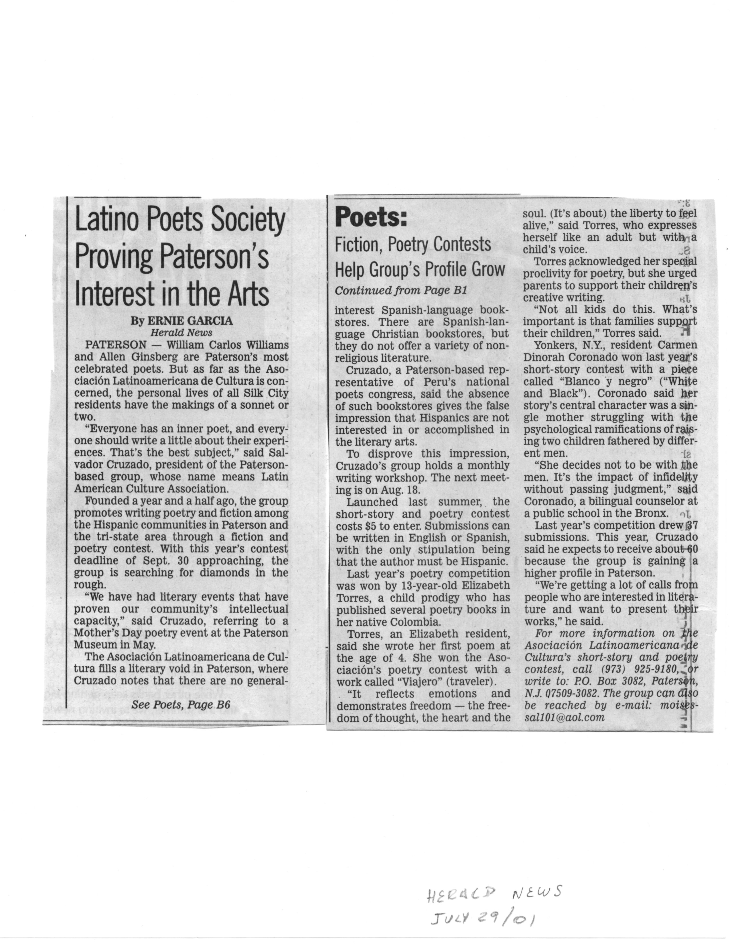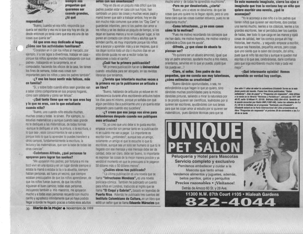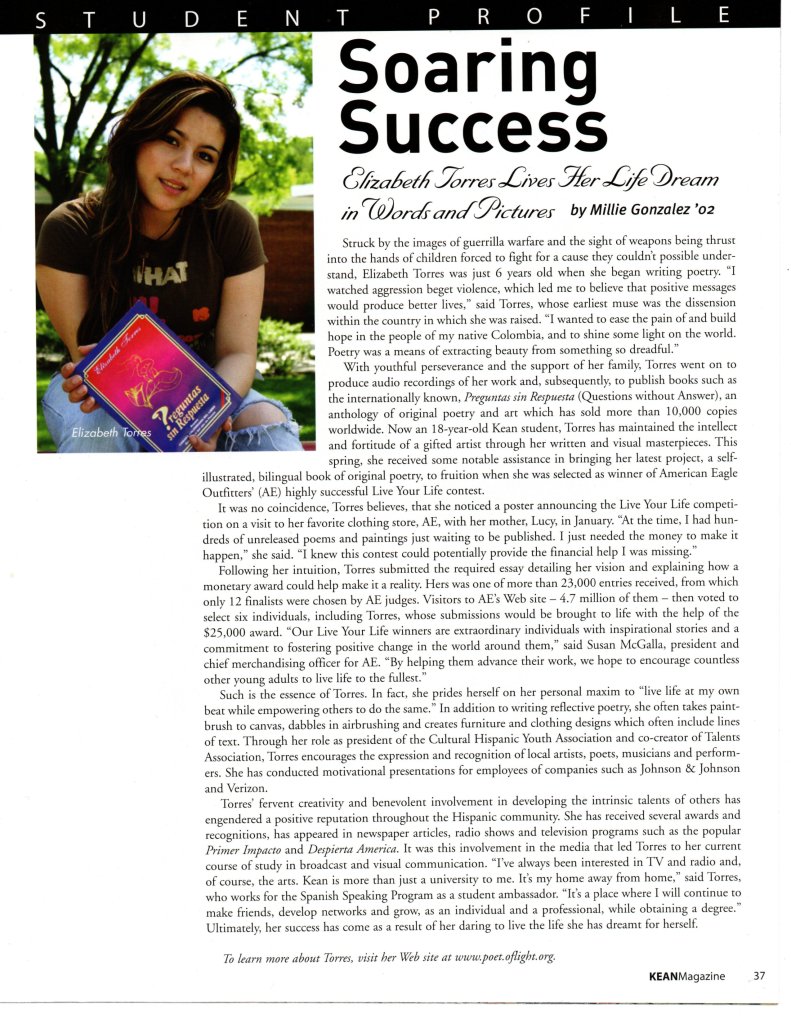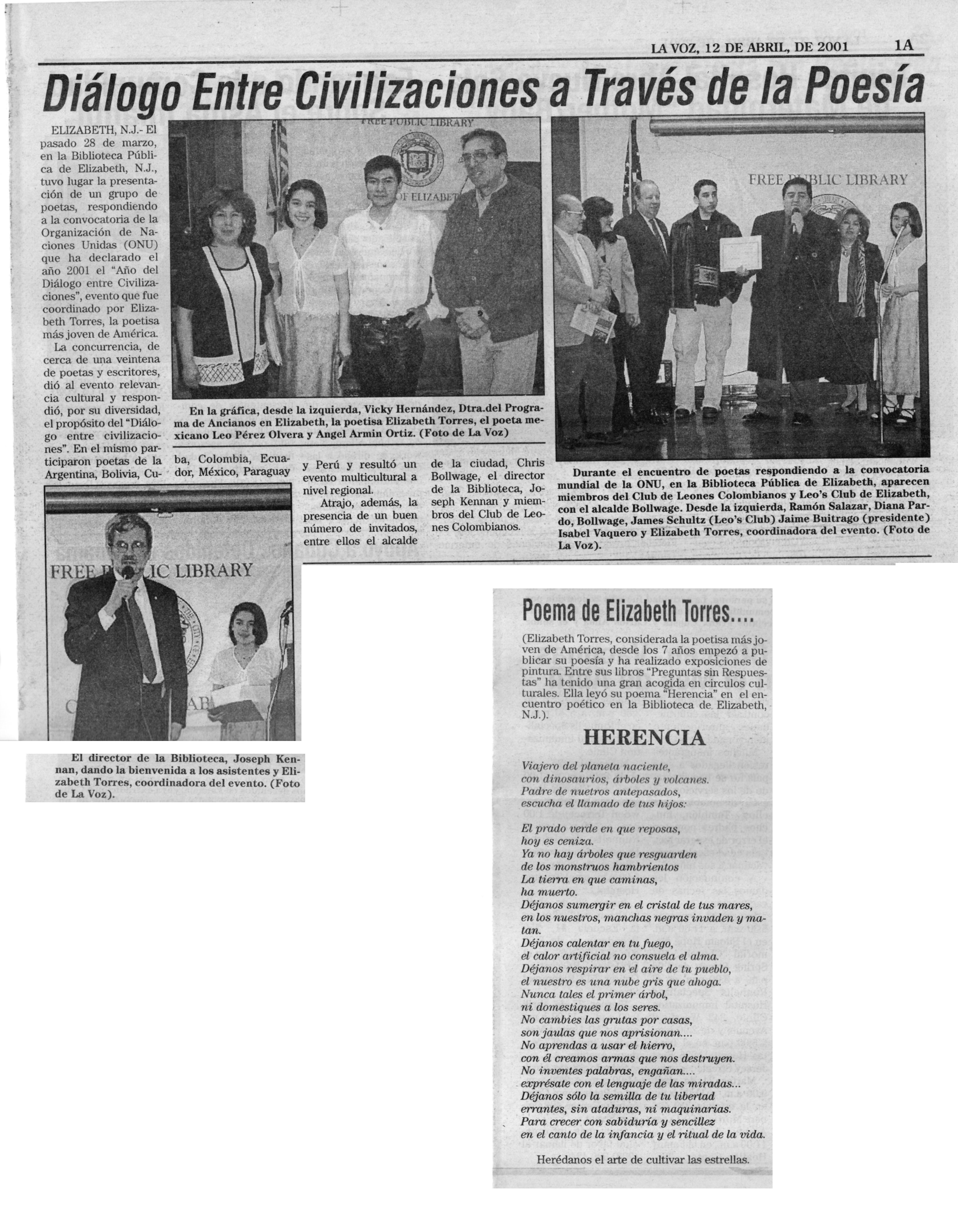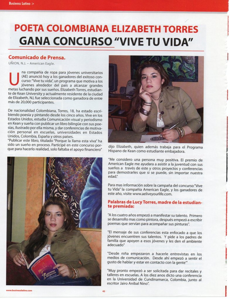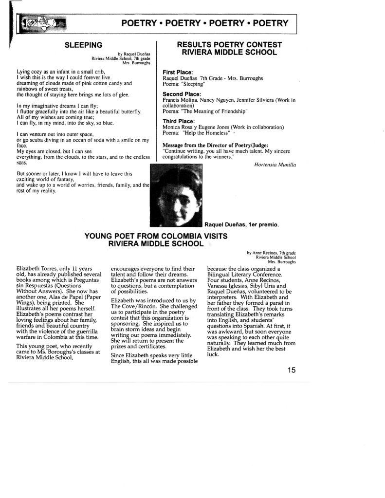 The Youngest Poet of America – El Tiempo (Spanish) Colombia, 1999