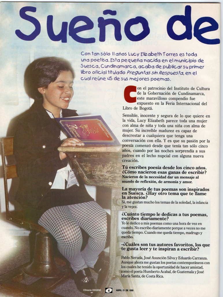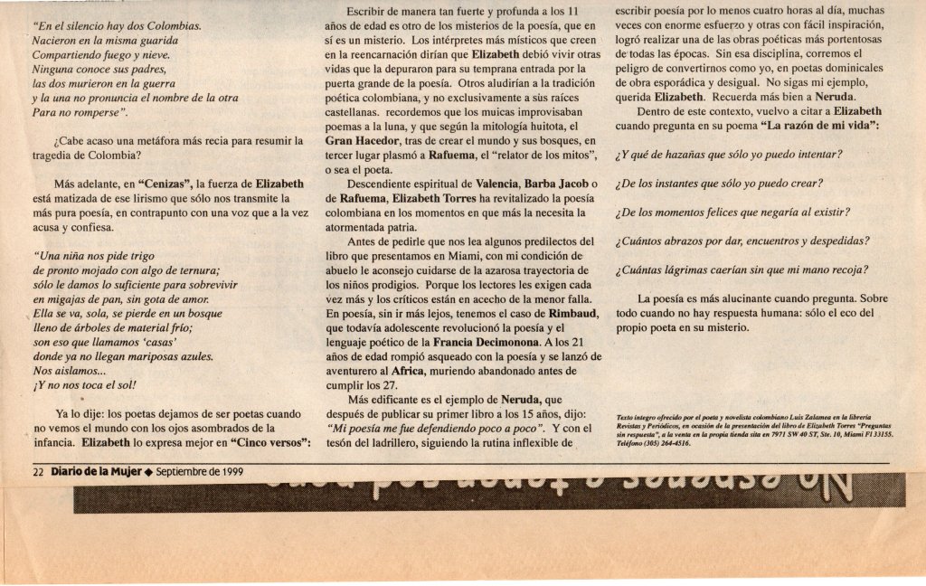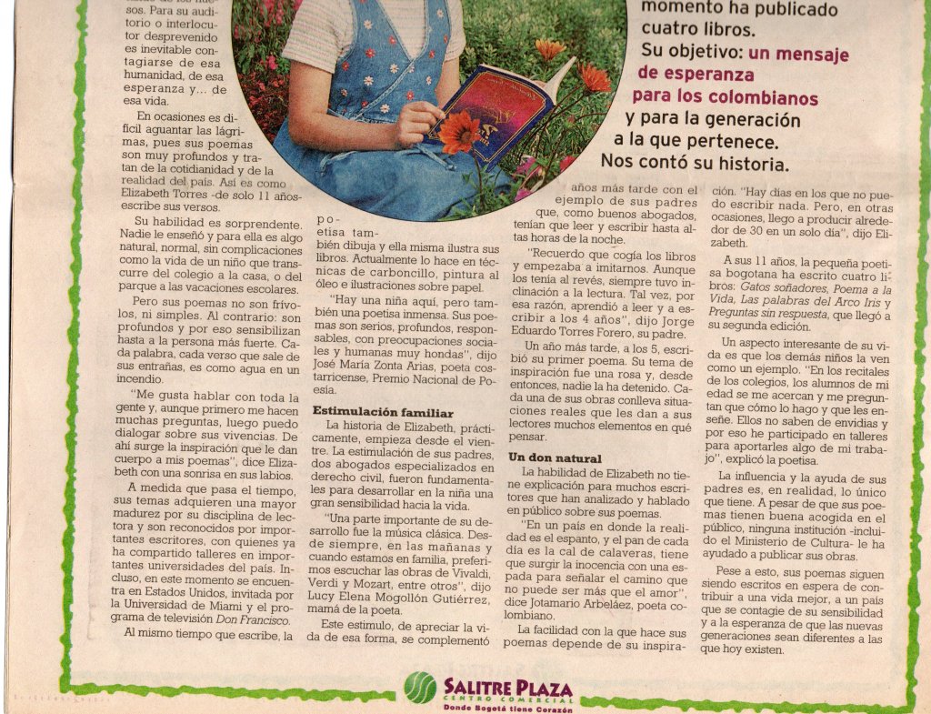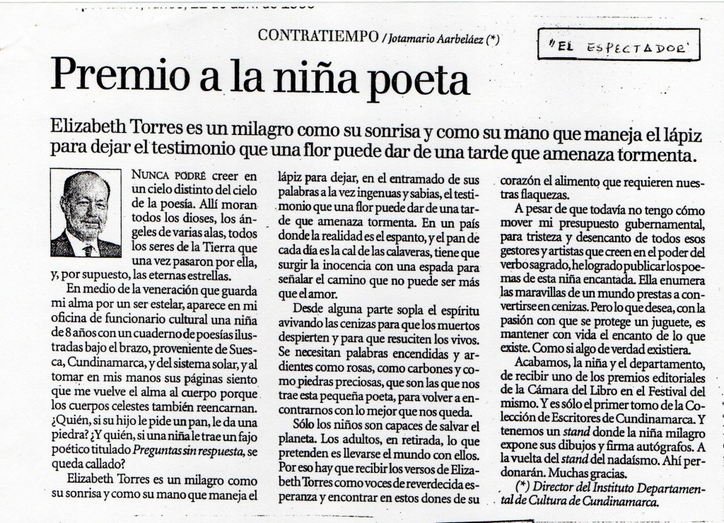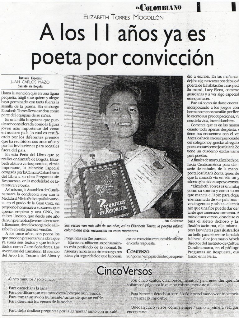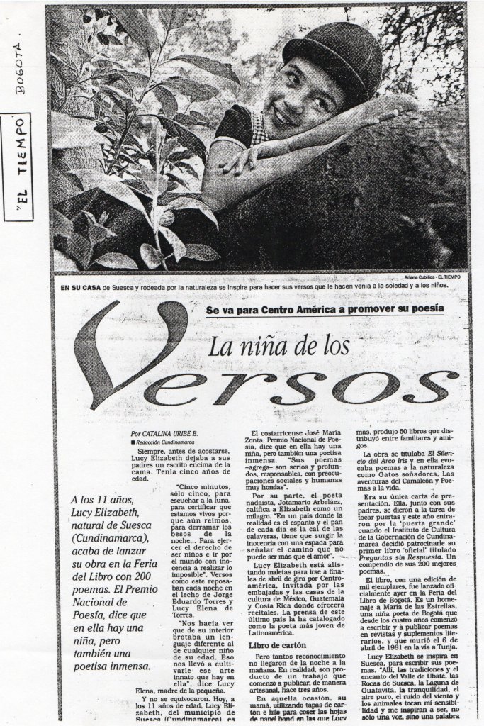 The girl of the verses (Spanish) El Tiempo, Colombia, 1999