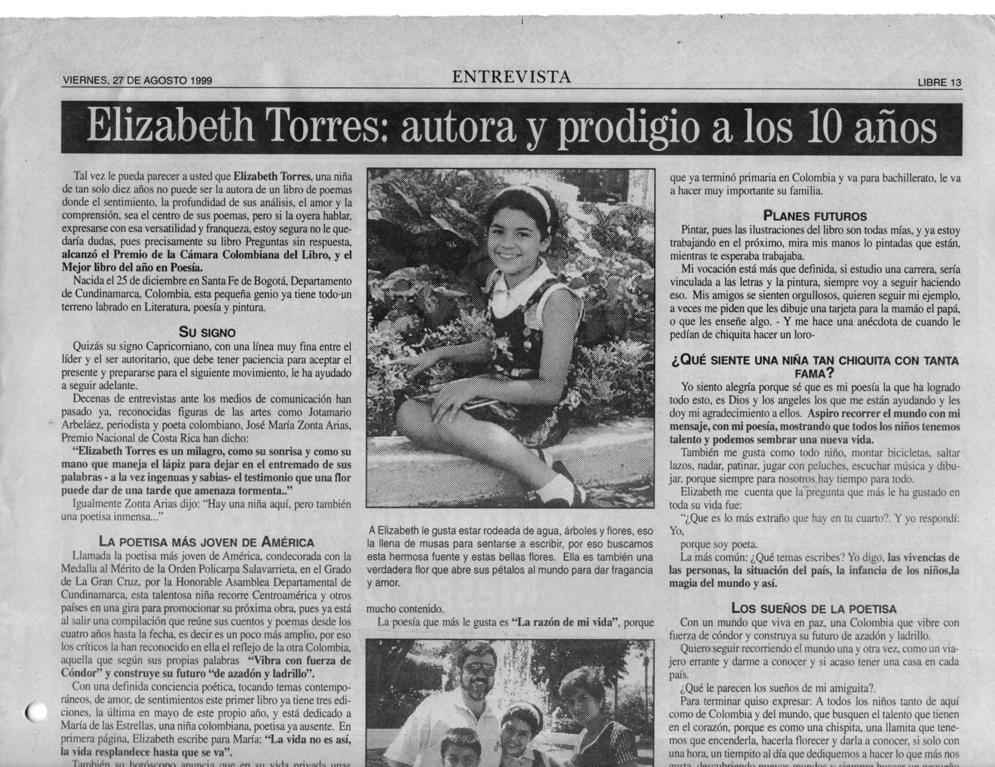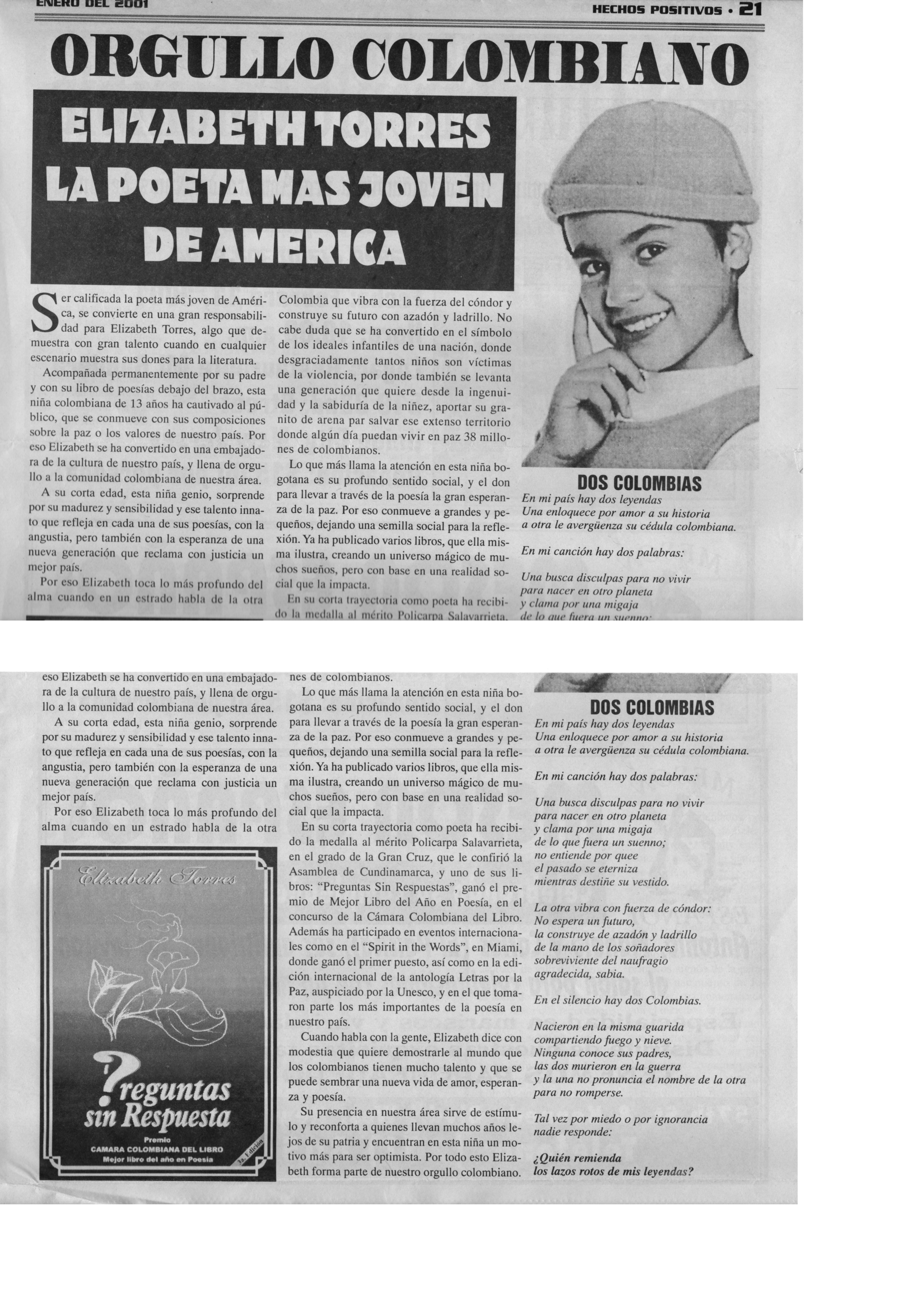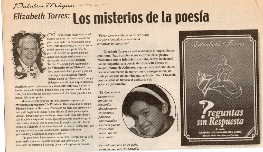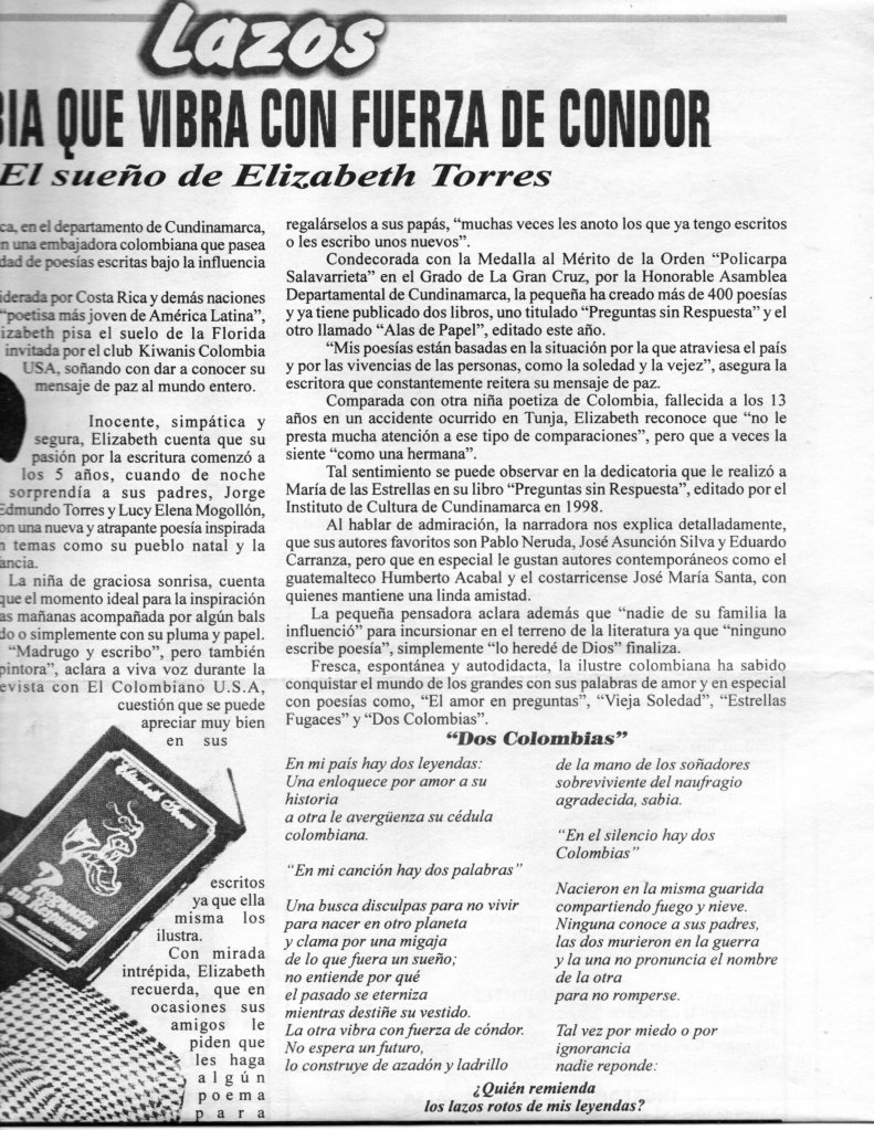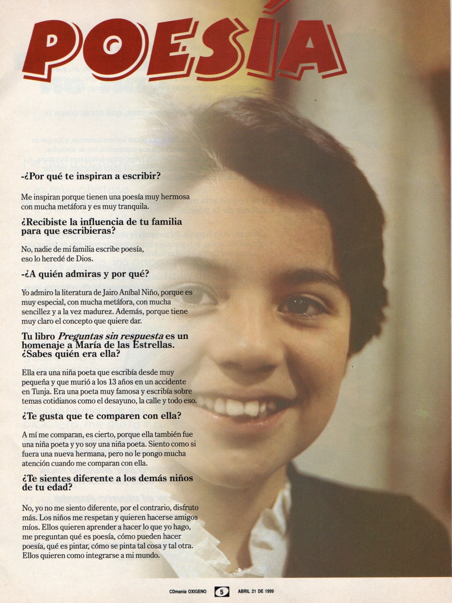 The girl of the verses (Spanish) El Tiempo, Colombia, 1999