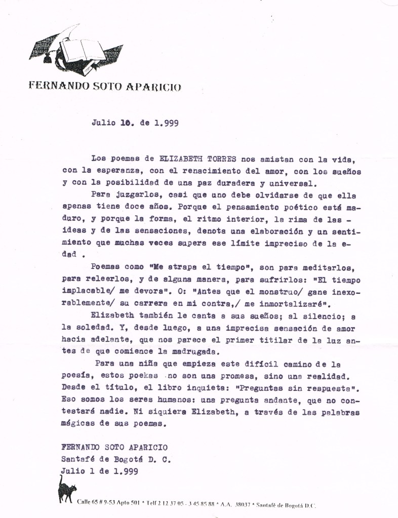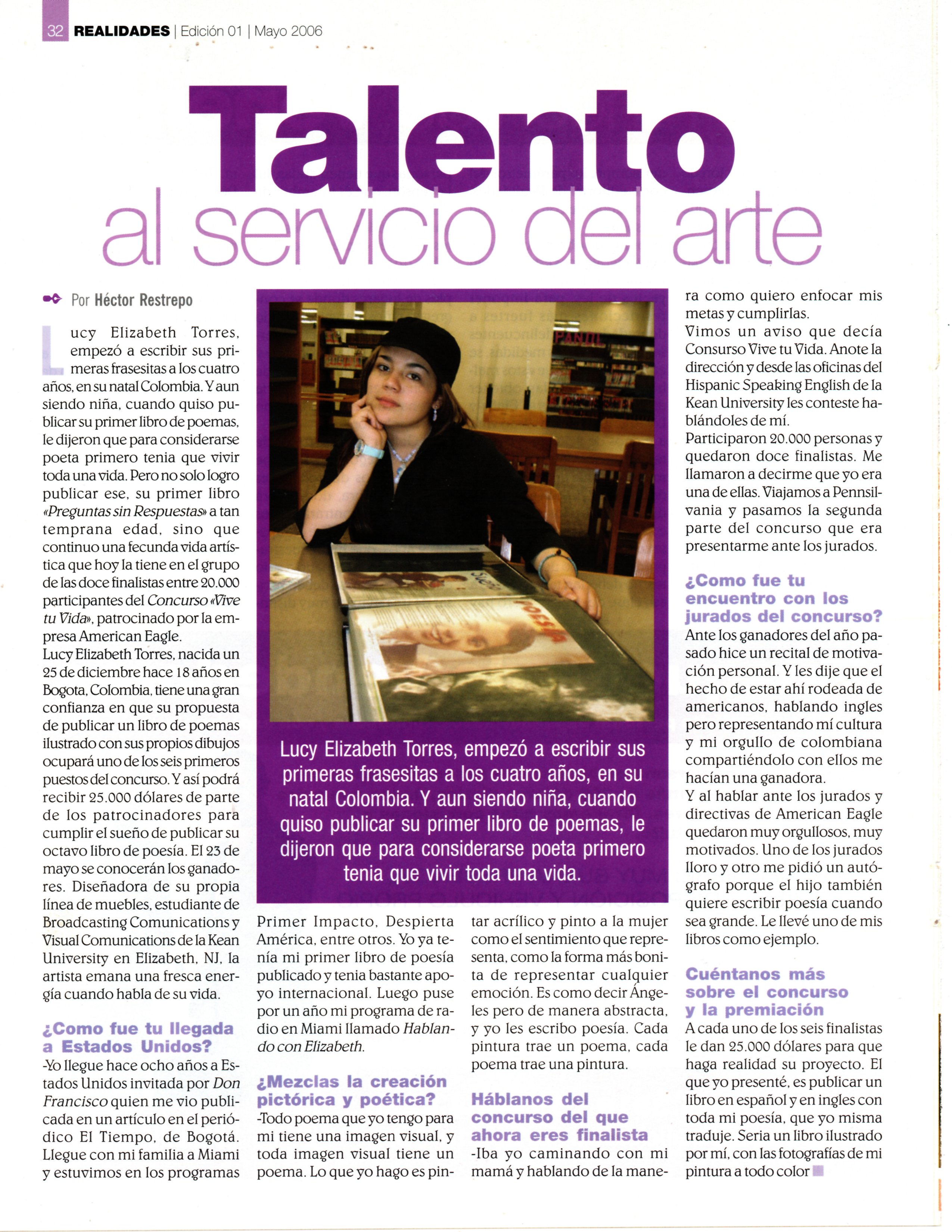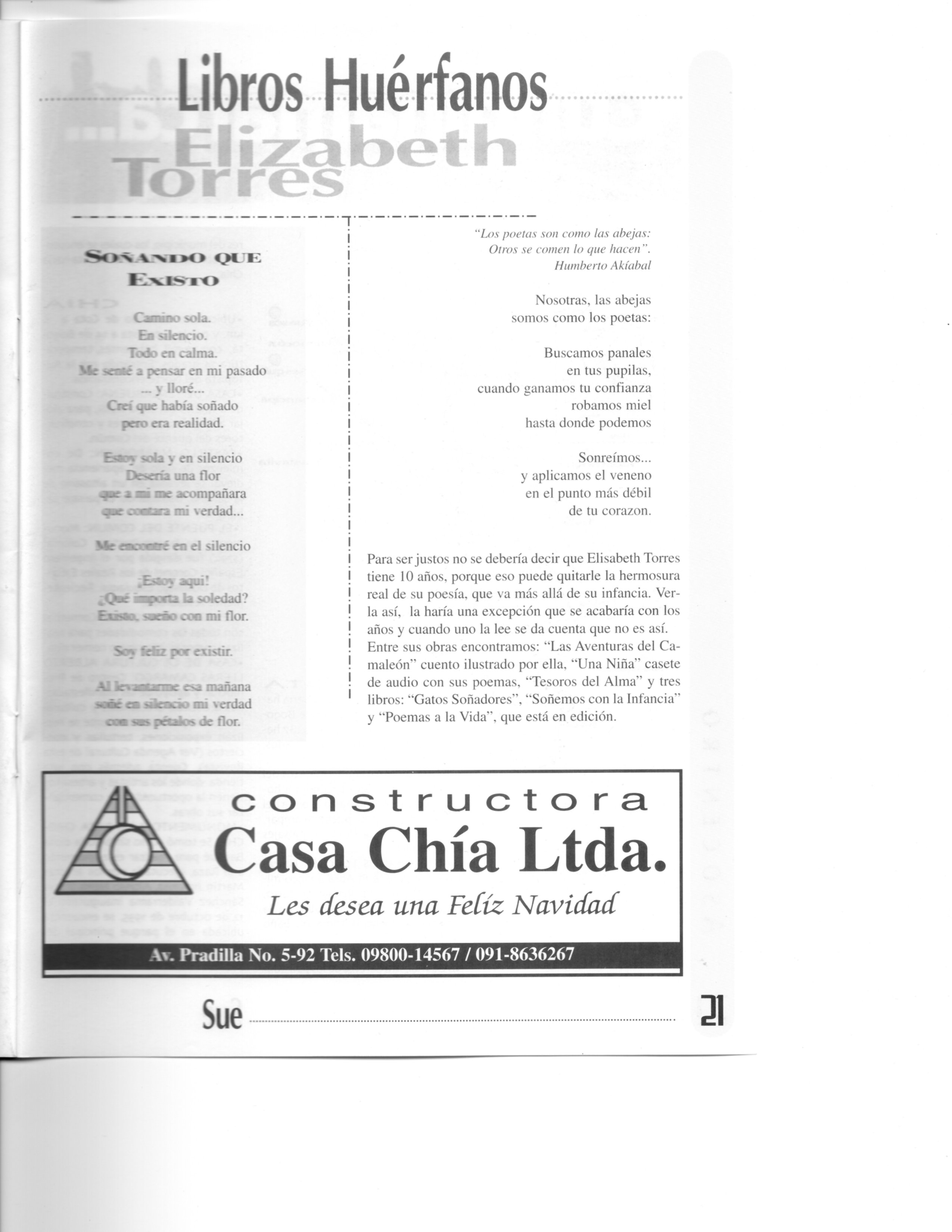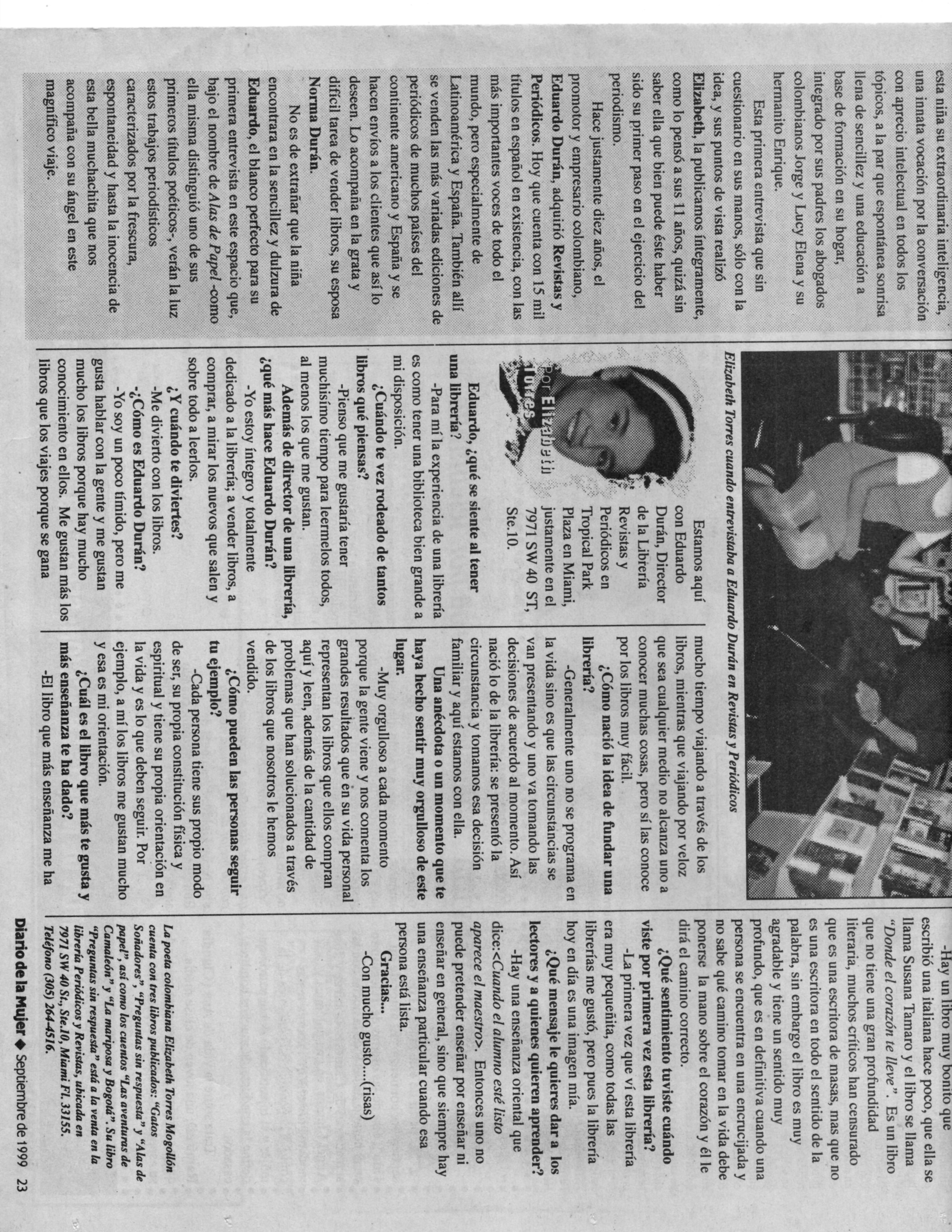 The girl of the verses (Spanish) El Tiempo, Colombia, 1999