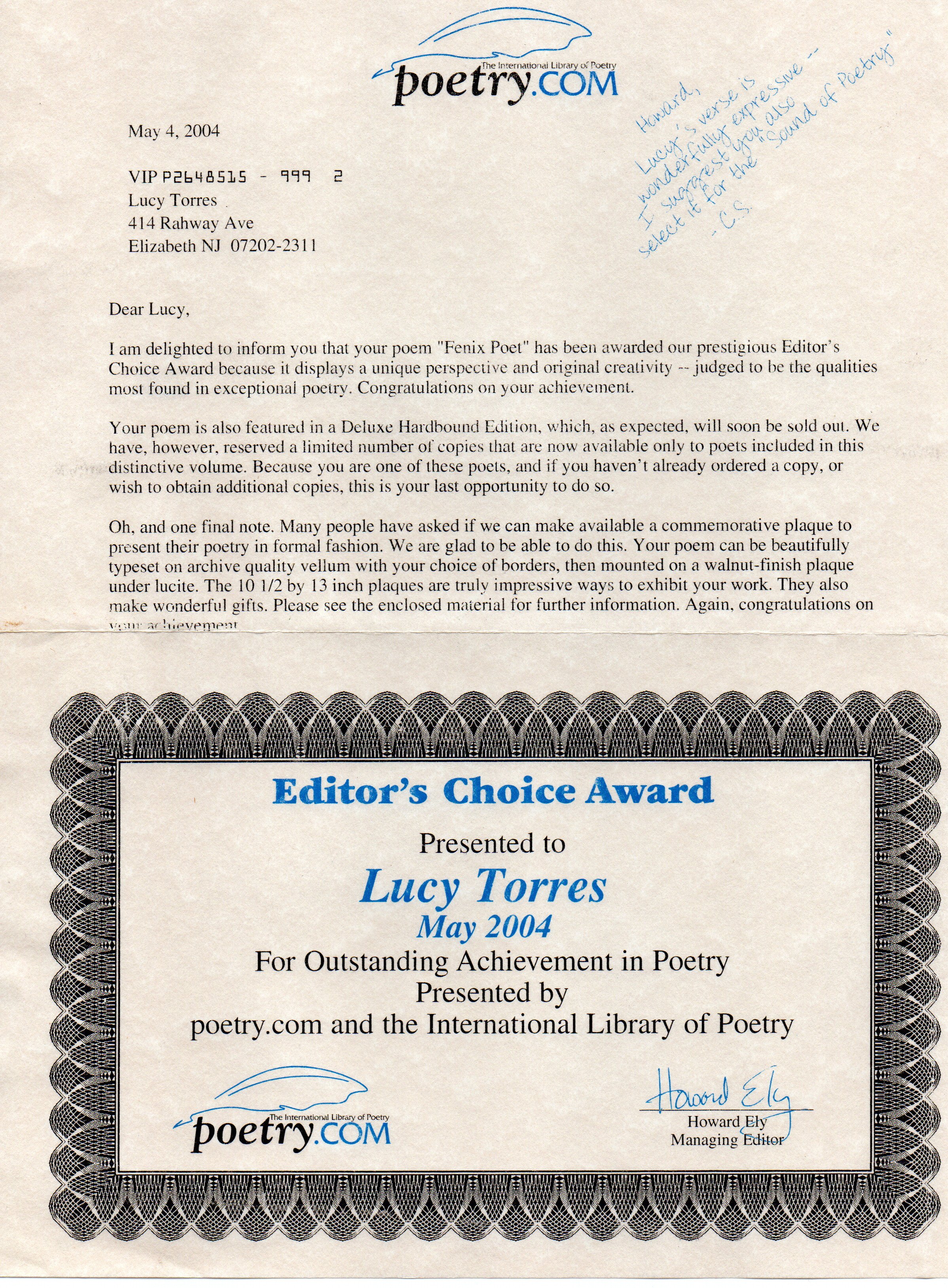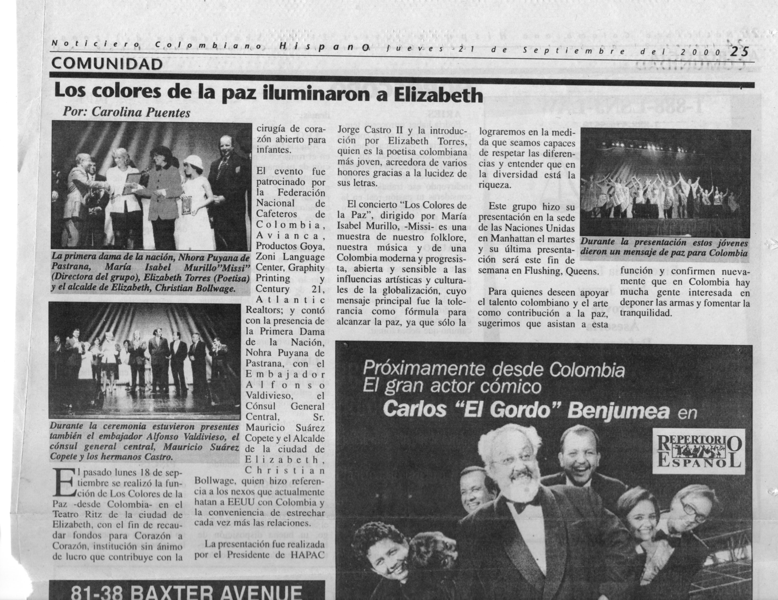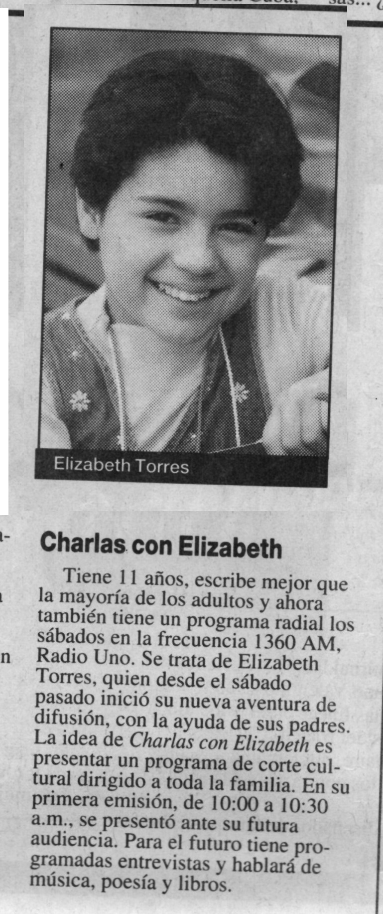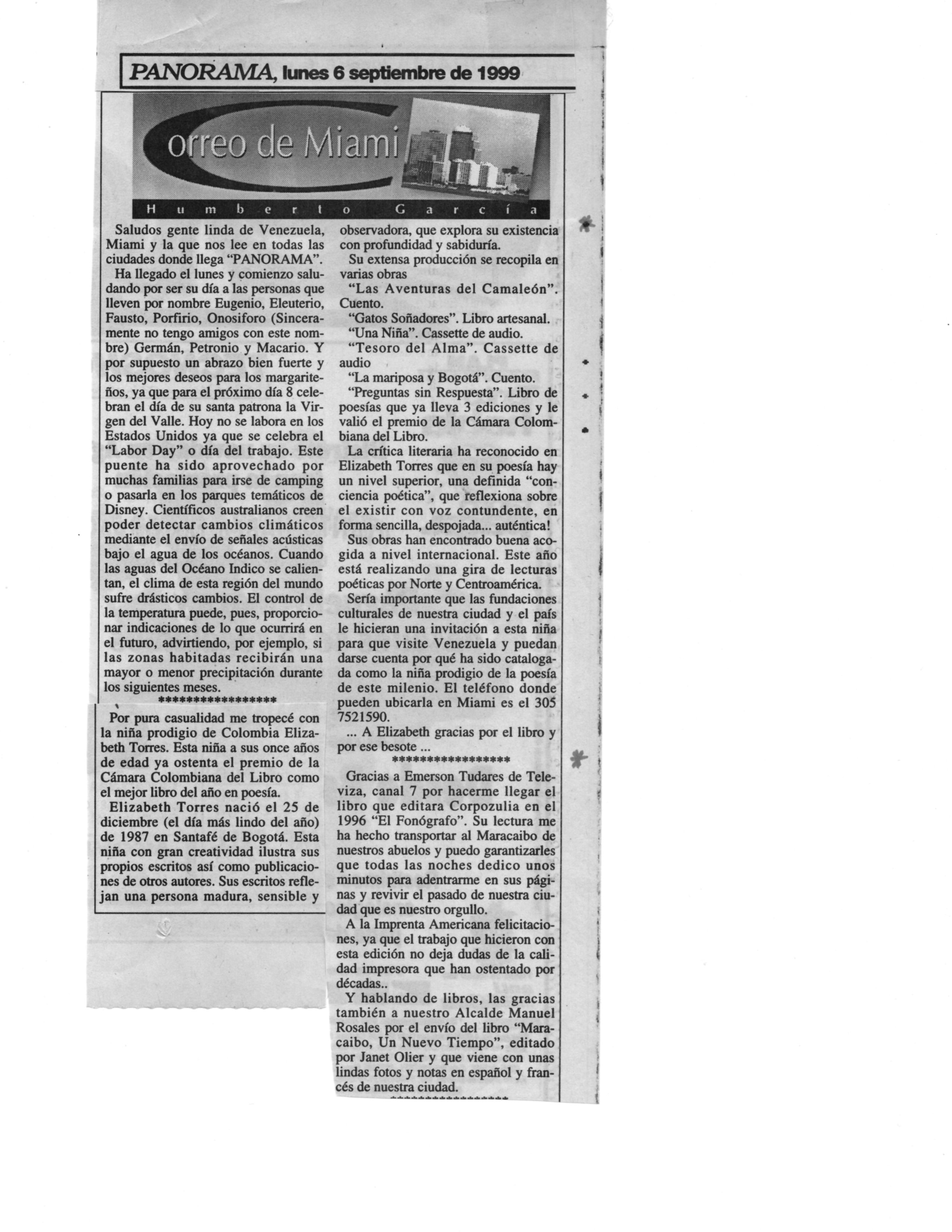The girl of the verses (Spanish) El Tiempo, Colombia, 1999