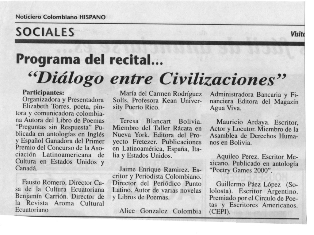 Poets gather in NY – El Espectador (Spanish) Colombia, 2008