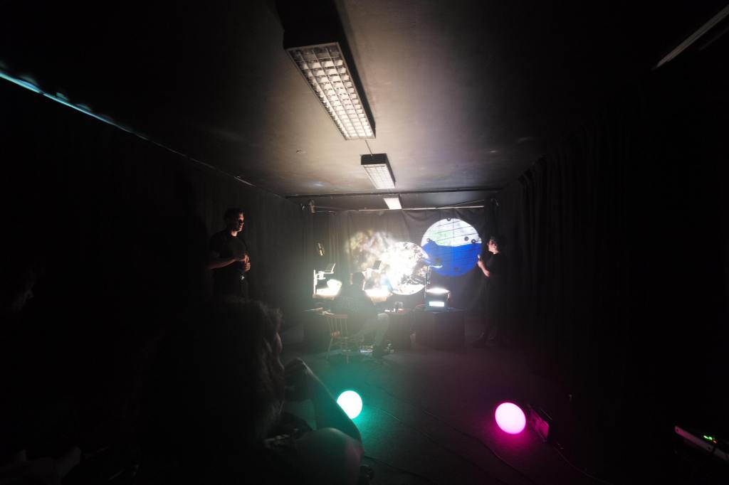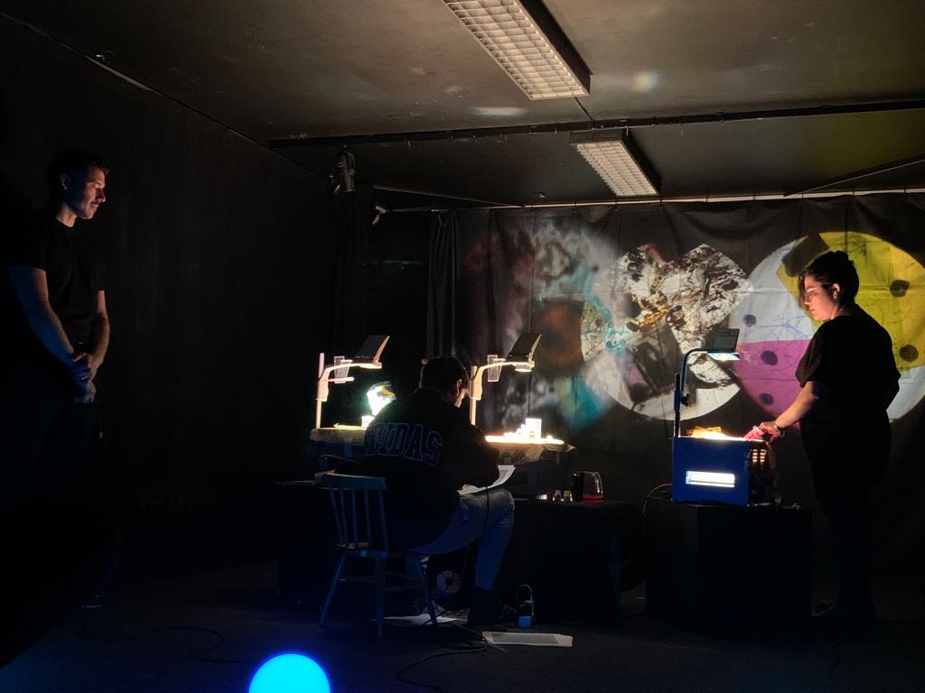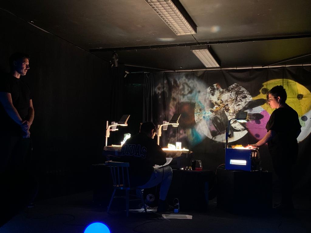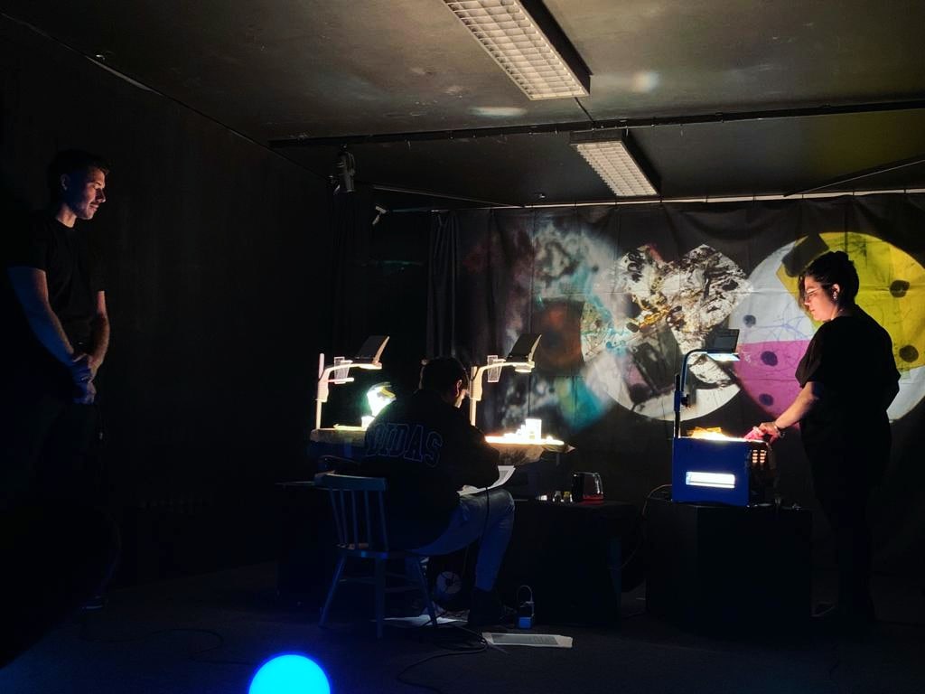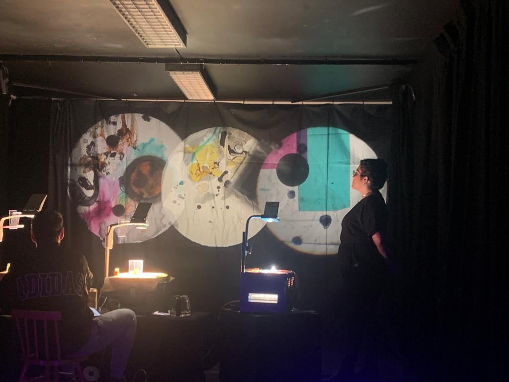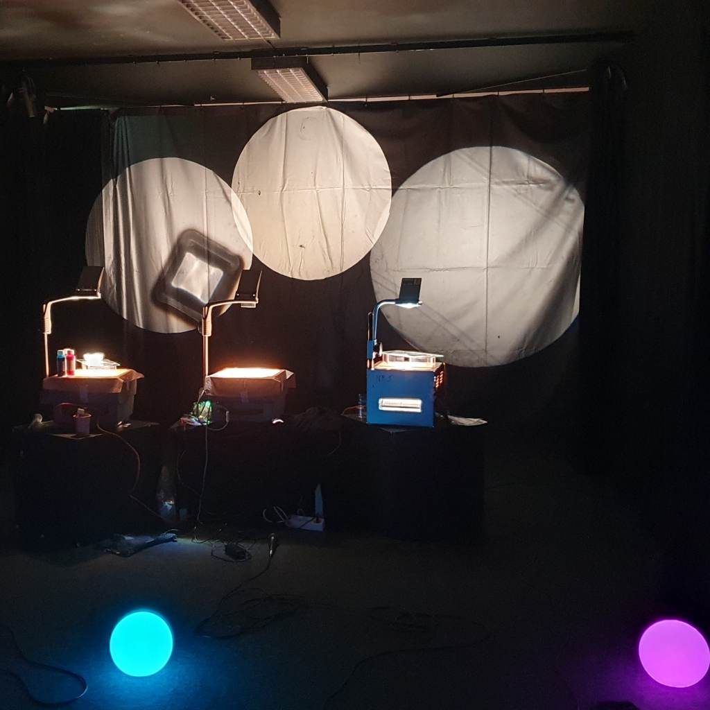 Visuals made live on overhead projectors by Daniel Malpica and Elizabeth Torres