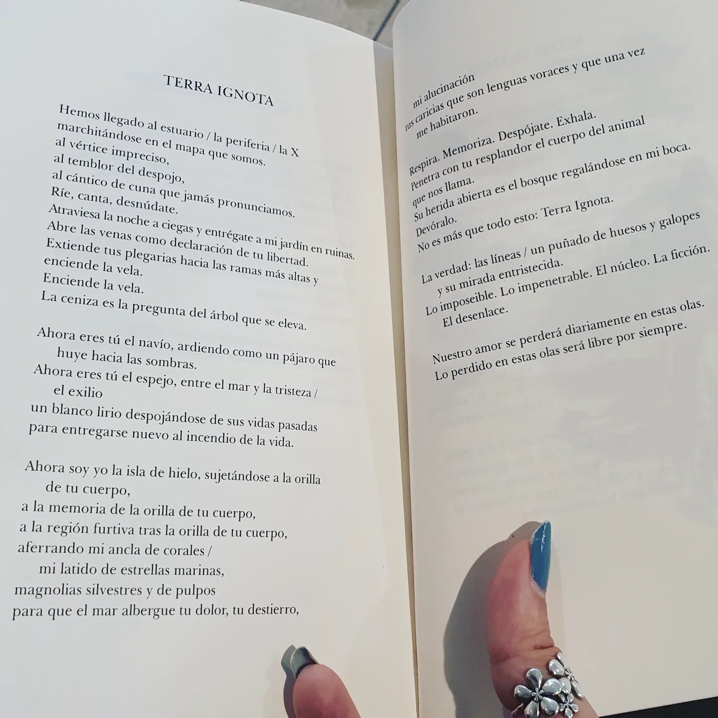 Rabia de la rabia. Rabia de sangre en luna llena. Rabia de sombras derramándose hacia dos orillas distintas. Rabia de la flecha certera. Rabia también del ciervo y su presentimiento. Rabia de tantos años en abismo. Rabia de agujero negro. Rabia ancestral, milenaria, incandescente. Un río un animal una pulsera de campanas en el pie derecho. Escucha mi rabia galopando hacia la noche. Rabia en singular. En vertical. En vertigo. Rabia de lirios apagandose. Hemos llegado a la desembocadura. Este es el destierro. La orfandad. Hora de cortar los hilos dorados. Hasta aquí, amor, hasta aquí.