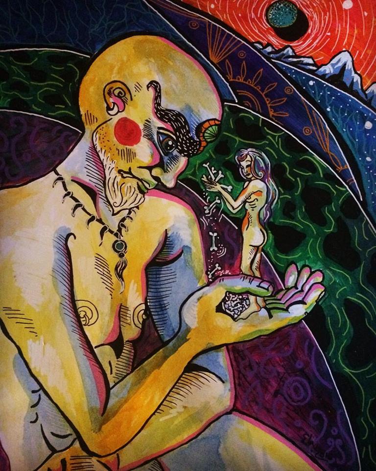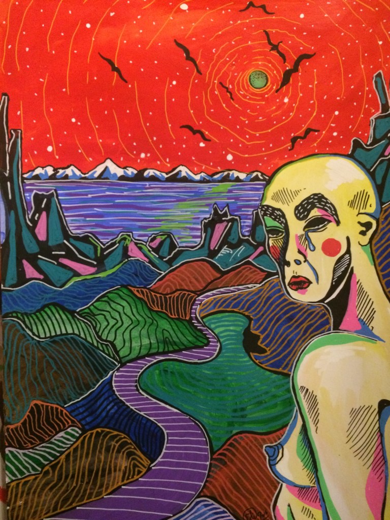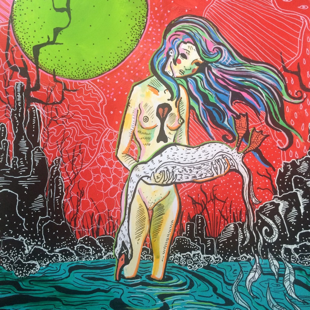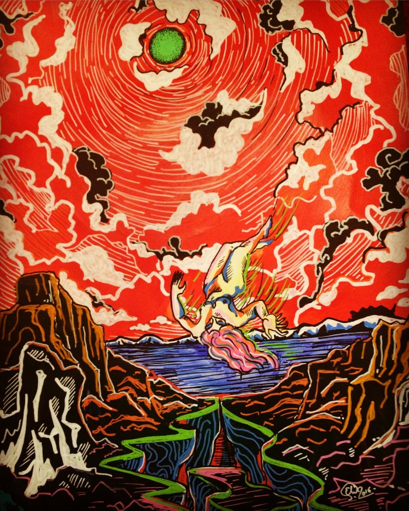 Acrylic and ink on paper. See entire series on submenu under Premonitions.