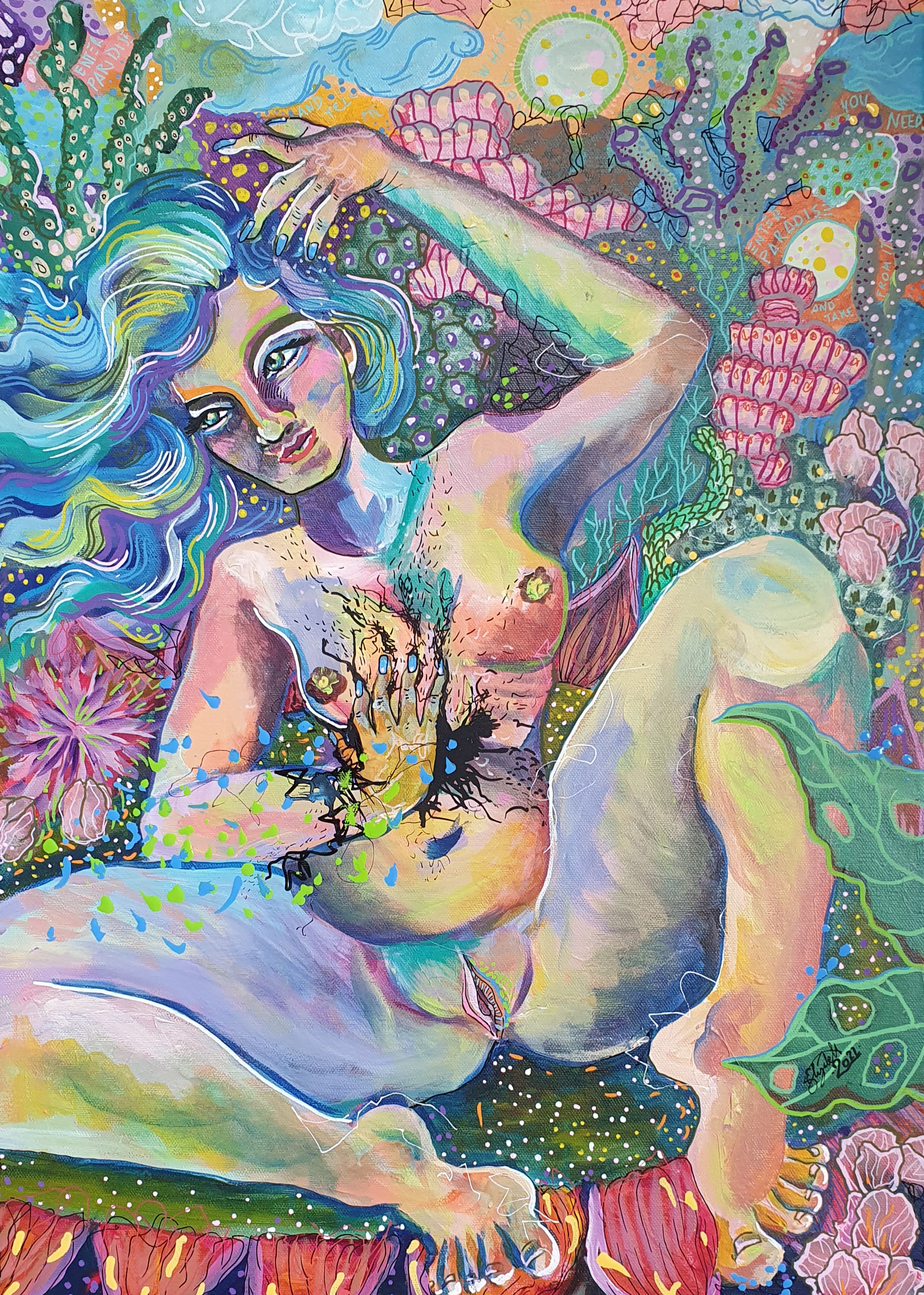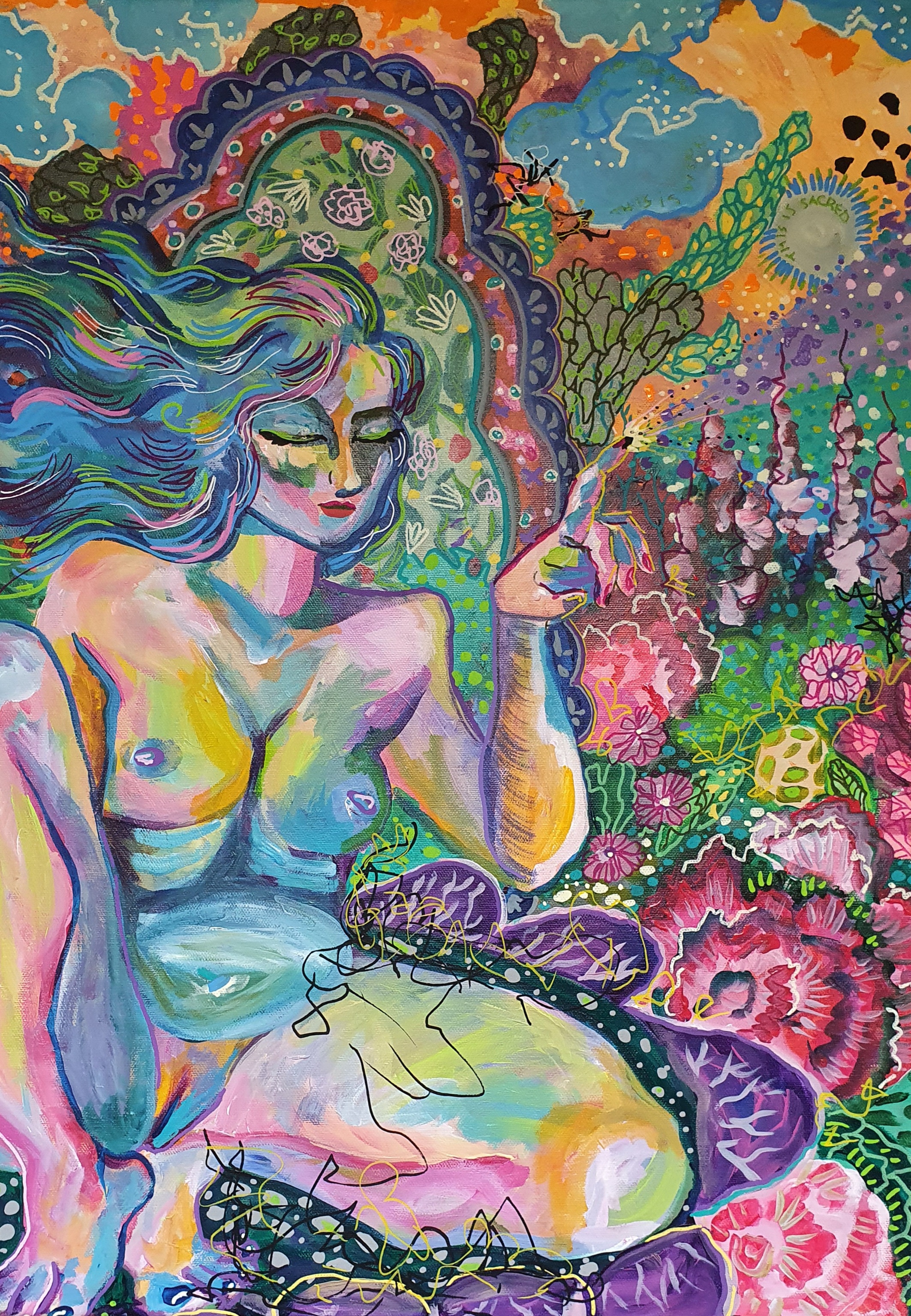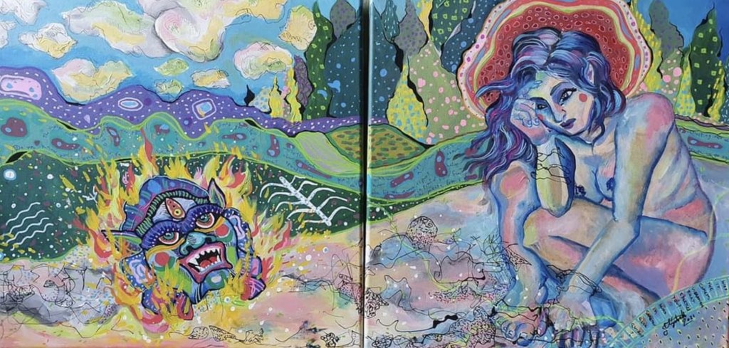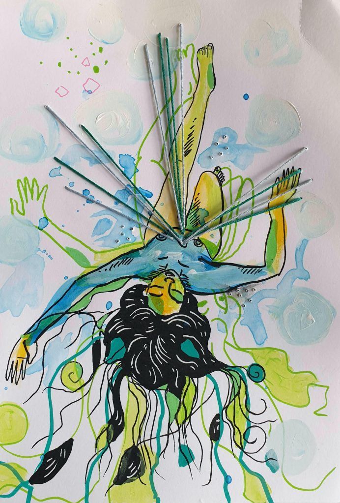My work ranges from handmade illustrations, objects, paintings and murals, to digital illustrations and designs. I tend to use embroidery, collage, cut-up and recycled materials as well, which you can find in both physical and digital work. I am very inspired by the contrast of digital and analog, a “fairytale” feel and a touch of messed-up reality. I like to combine various techniques and often comment on society’s current challenges and mixed perspectives, with a focus on agency, territory and language as a starting point, and poetry as a thread.